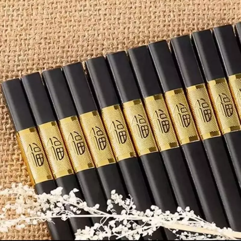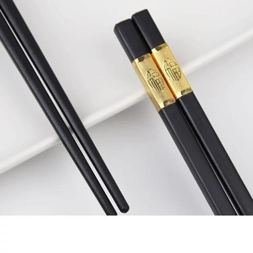 چوب غذاخوری چاپستیک طرح رومی دوعددی (جفتی ) مشکی با طراحی طلاکوب رنگ طلایی