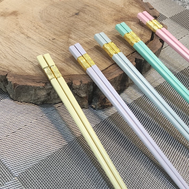 چاپستیک چوب غذاخوری چینی جنس فایبرگلاس و ملامین مدل فانتزی دسته طلایی