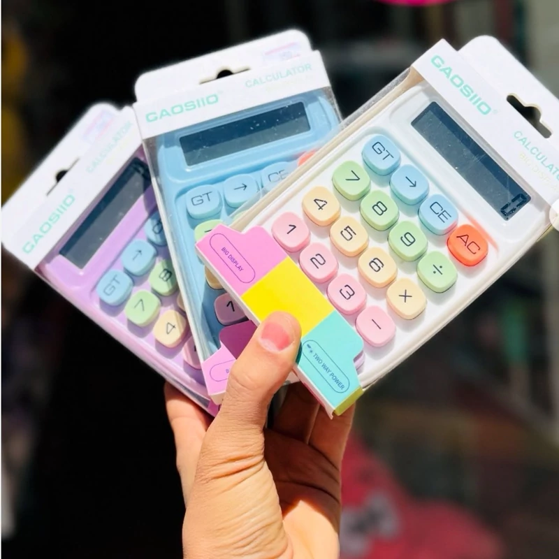 ماشین حساب دکمه رنگی خورشیدی سولار دار پاستیلی کیوت و فانتزی