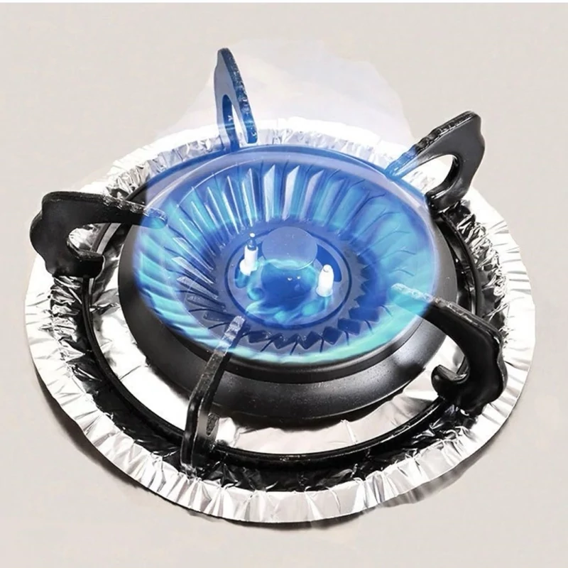 فویل دور شعله گاز مدل گرد و مربع بسته 10عددی فویل آلومینیومی اجاق گاز