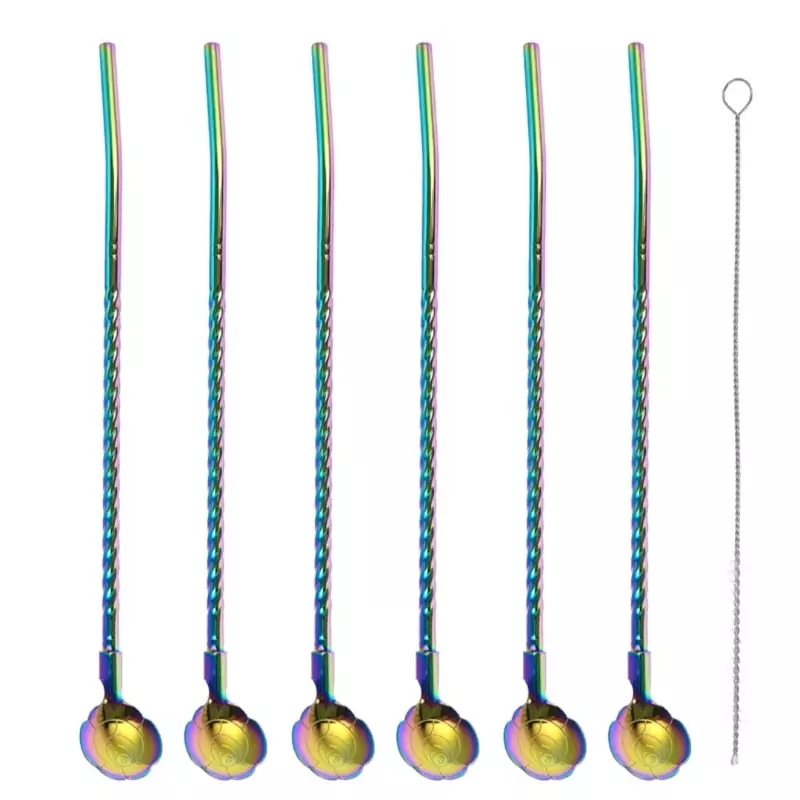 قاشق شربت خوری طرح گل مدل هفت رنگ و هولوگرامی به همراه برس شست شو