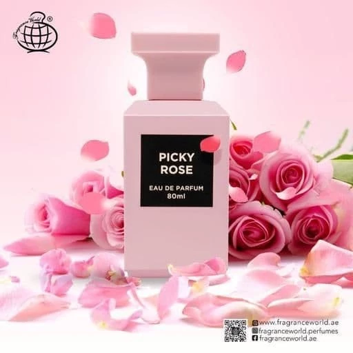 عطر ادکلن تام فورد رز پریک فرگرنس ورد (Fragrance World Picky Rose) عطری است معتدل ، کمی گرم و گلی برای زنان و مردان. عطر رز پریک در سال 2020 به بازار عرضه شد.این محصول نمونه شرکتی ادکلن تامفورد رز پریک اورجینال Tom Ford Rose Prick می باشد.