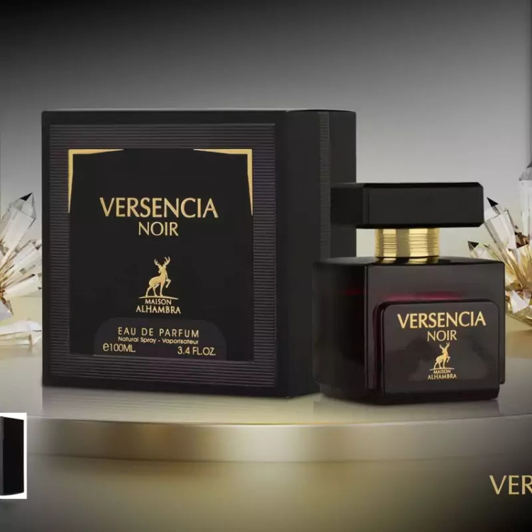 عطر ادکلن ورسنسیا نویر Versencia Noir الحمبرا عطری زنانه و شیک با رایحه گرم و تلخ است و مشابه ادکلن ورساچه کریستال نویر مشکی می باشد. رایحه گرم این عطر بیشتر از گل یاسمن، نارگیل و فلفل سیاه تشکیل می شود و انتخاب خوبی برای شب های سرد زمستانی و مهمانی های رسمی و شبانه می باشد.