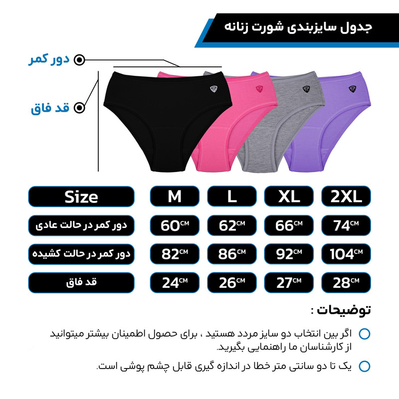 سازگار با پوست های حساس مقاوم در برابر شستشو دارای کمر کشی بسیار لطیف در بسته 4 عددی جنس: 95درصد نخ پنبه 5درصد لاکرا رنگ های مشکی، ملانژ، بنفش و صورتی از سایز S تا 3XL