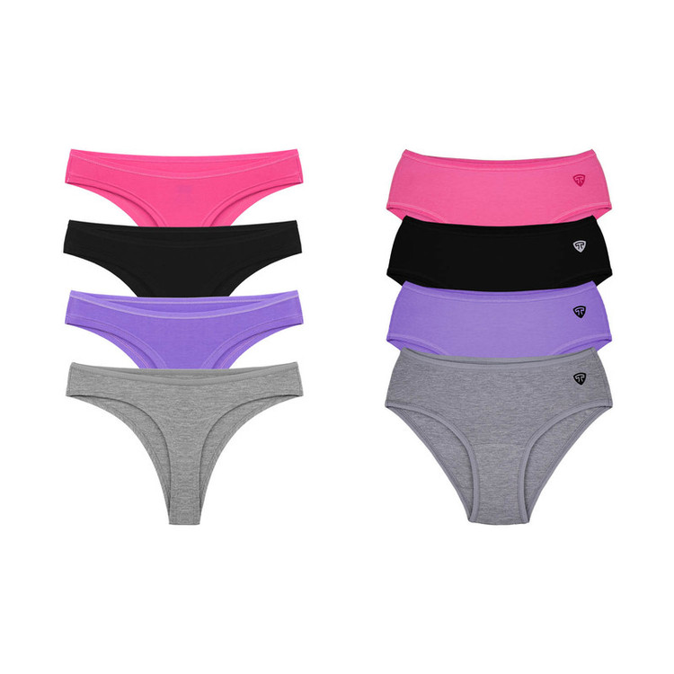 سازگار با پوست های حساس مقاوم در برابر شستشو دارای کمر کشی بسیار لطیف در بسته چهار عددی جنس محصول : 95% نخ پنبه ، 5% لاکرا رنگ های مشکی، ملانژ، بنفش، صورتی