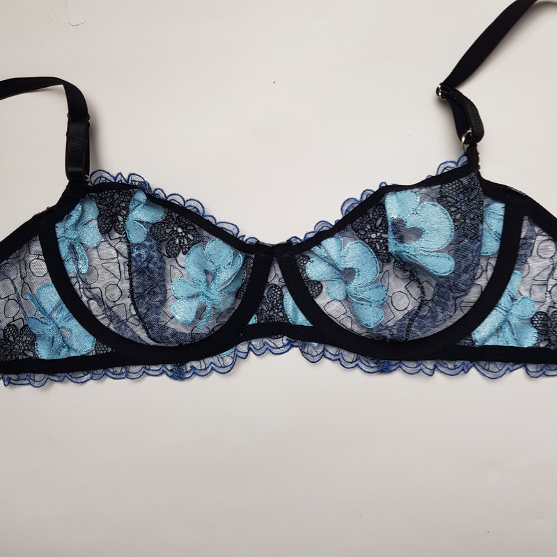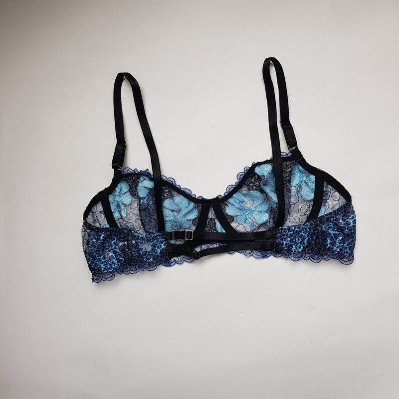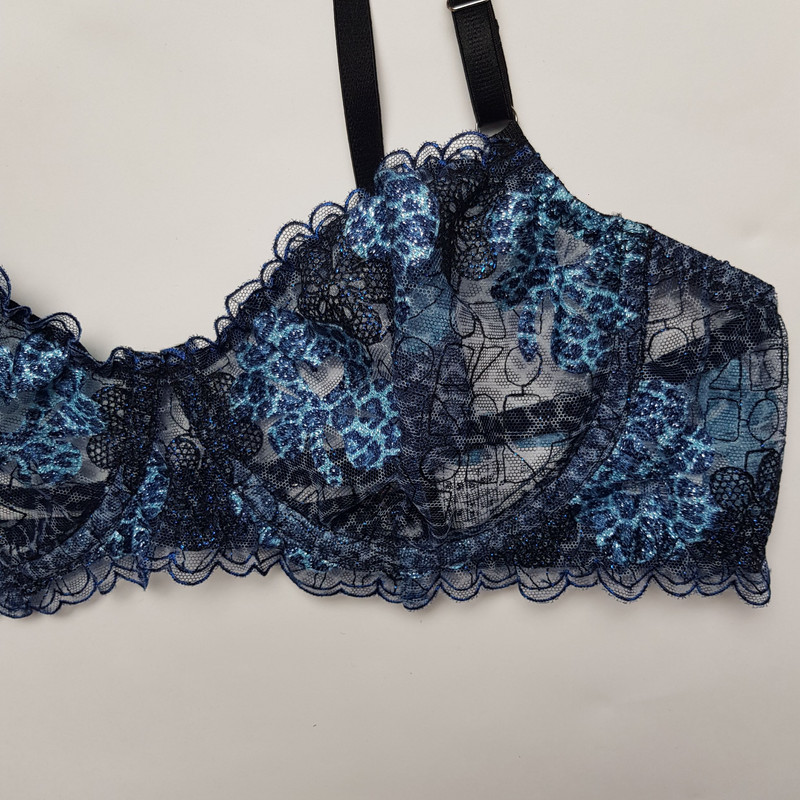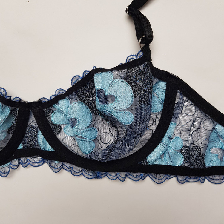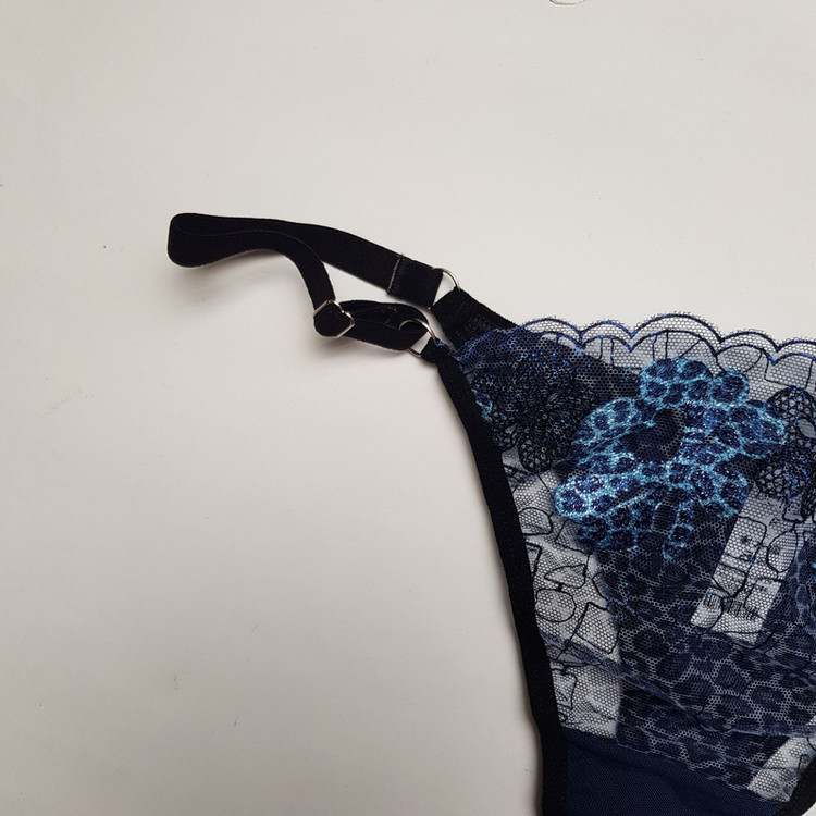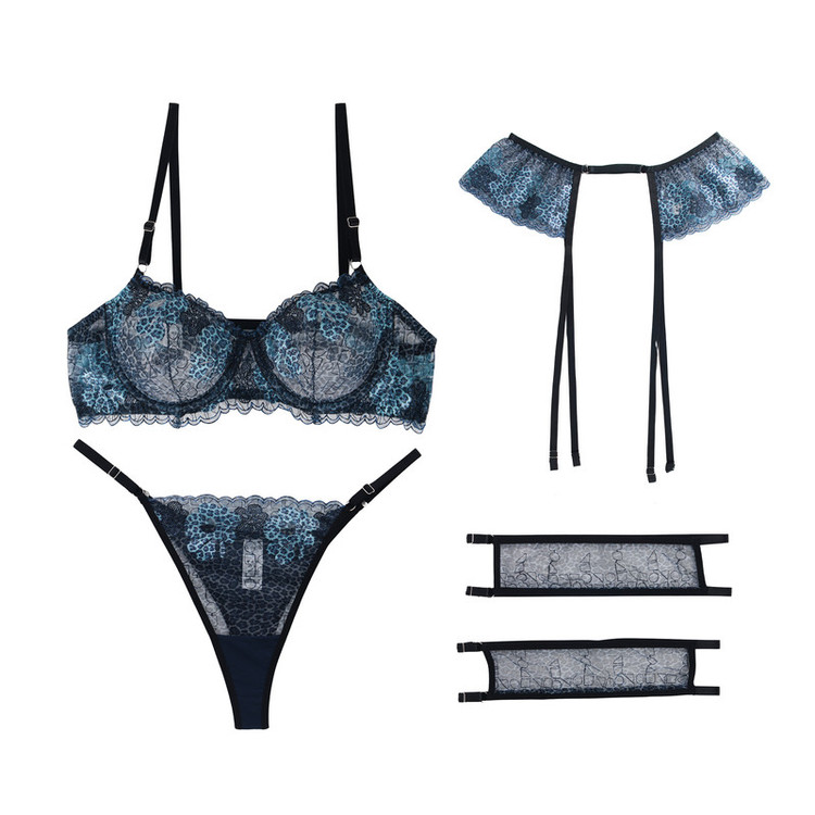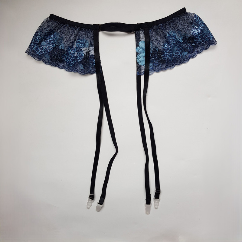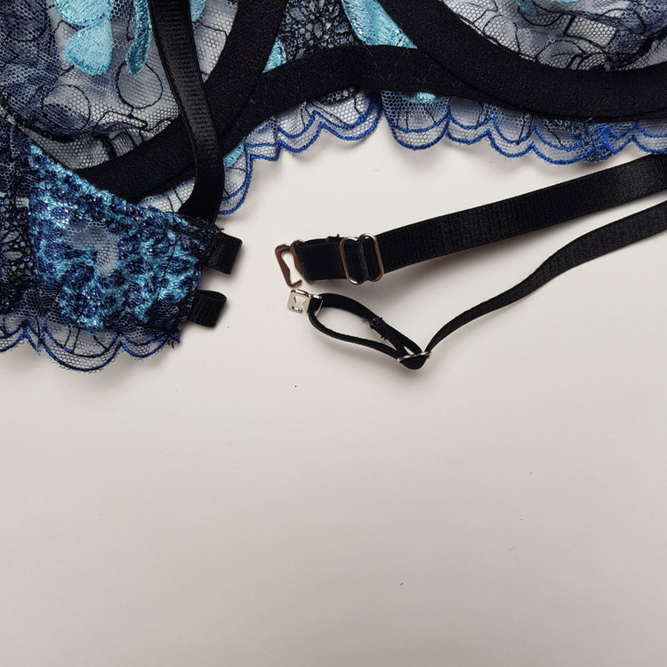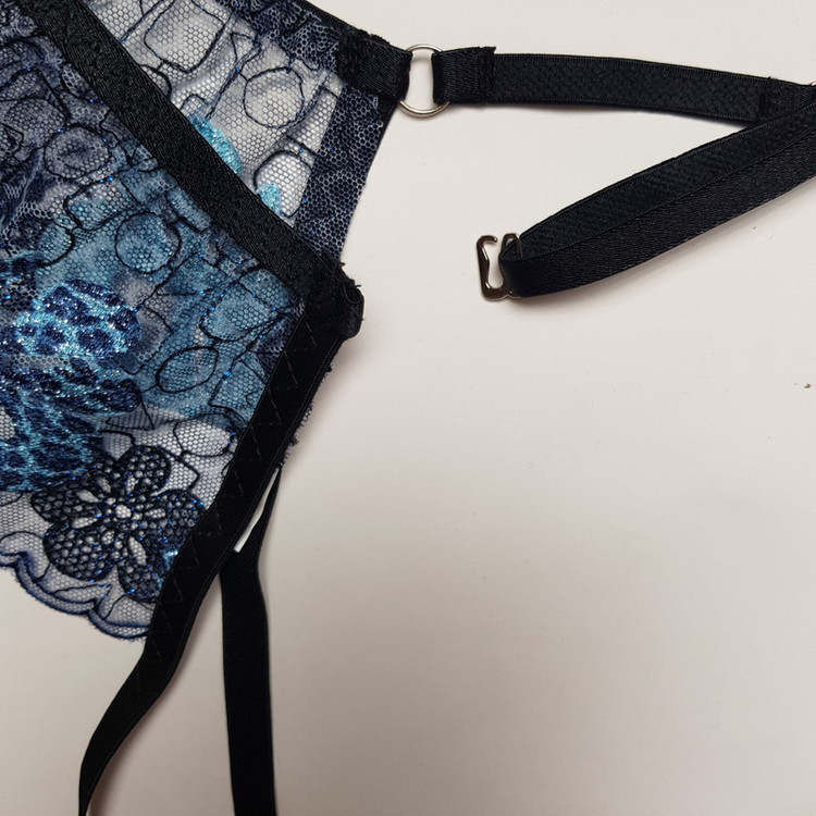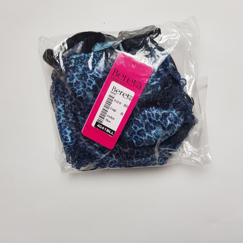 ست سوتین و شورت زنانه برتا مدل توری کد 4041BLL به همراه نگهدارنده جوراب