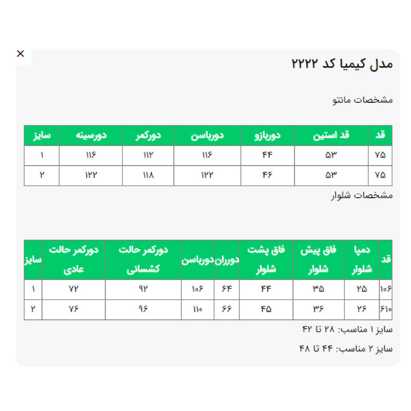 مانتو و شلوار زنانه السانا مدل کیمیا کد 222205