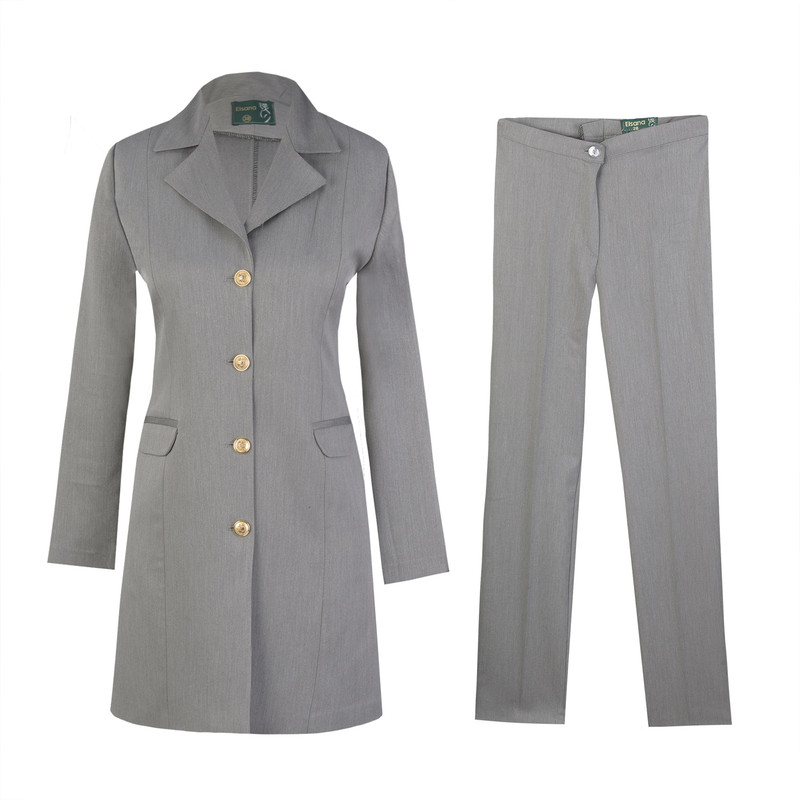 جنس پارچه: فیونا رنگ مانتو و شلوار طوسی سایزبندی: 38 تا 44 جلو و پشت کار برش خورده نحوه ی بسته شدن: دکمه 2 عدد جیب مدل یقه: انگلیسی قد مانتو: 85 سانتی متر قد شلوار: 105 سانتی متر