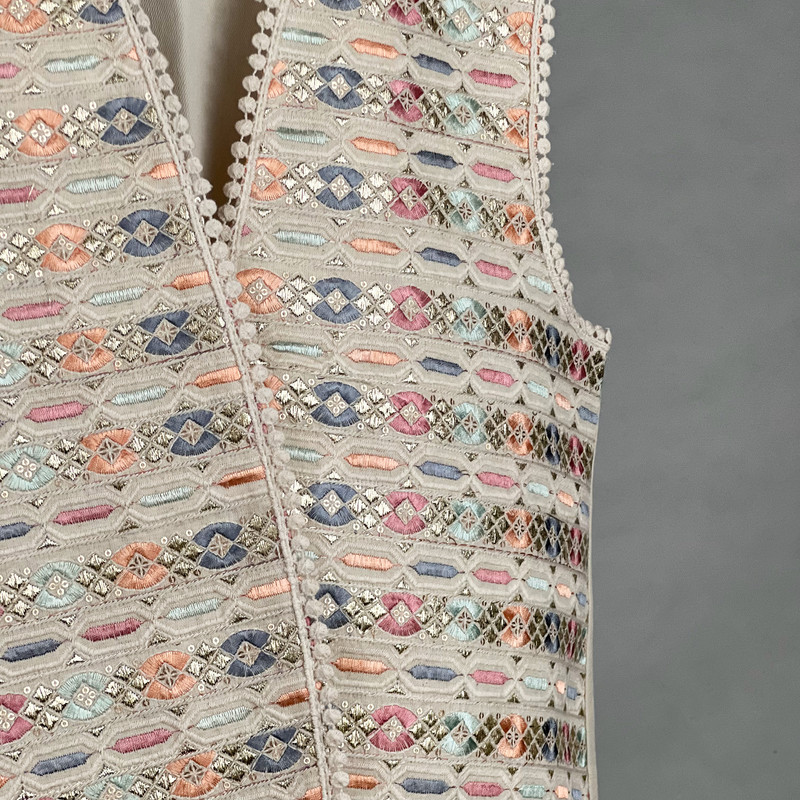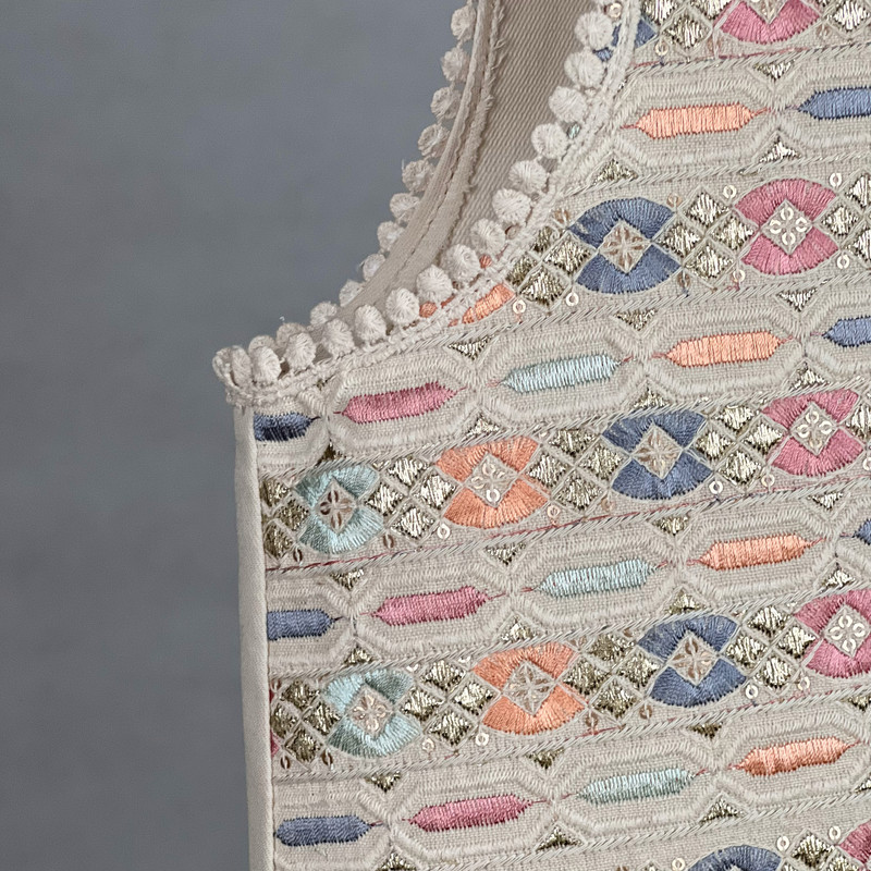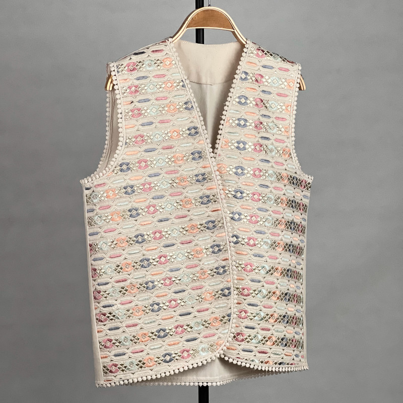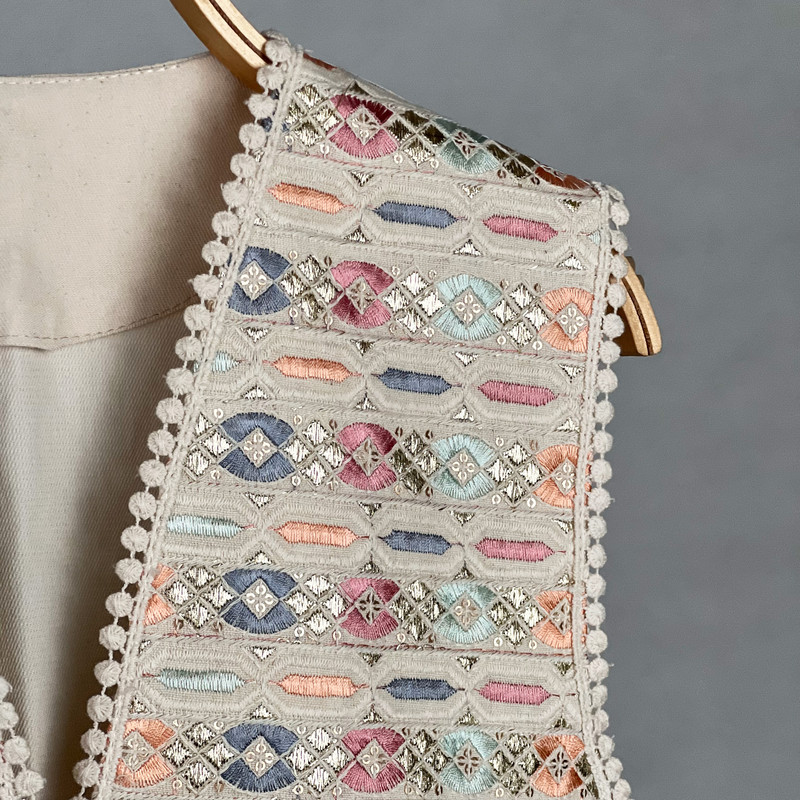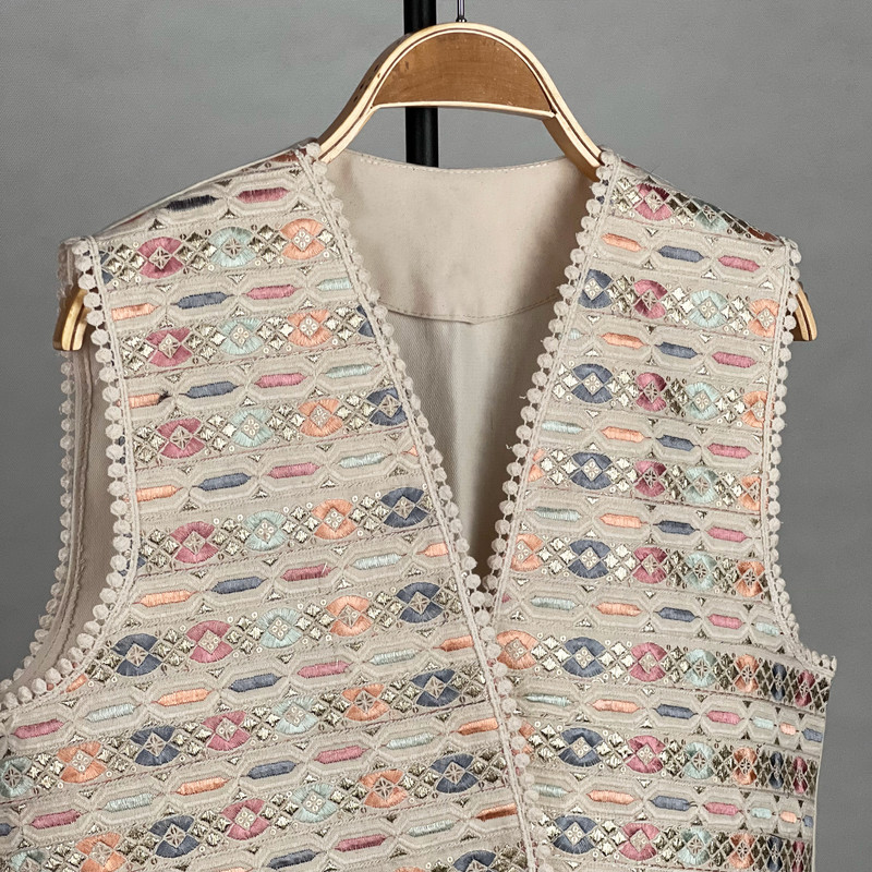 وست یقه هفت زنانه مدل کتان طلا کوب سنتی AK1530