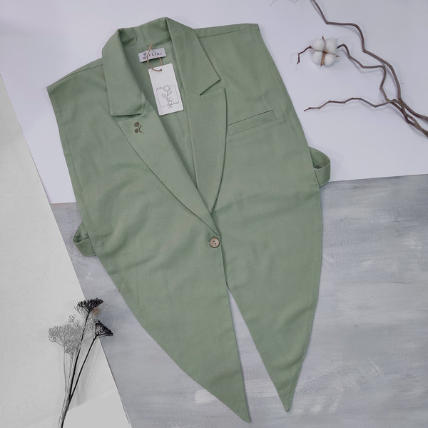 وست ساده کتان مدل کوتاه از برند ایپلیک زی است. با طرح و رنگ اسپرتی و شیک که باب پسند دختران جوان می باشد. از دوام بالا و دوخت تمیزی برخوردار است و یقه هفت انگلیسی و دکمه دار دارد.این وست فری سایز است