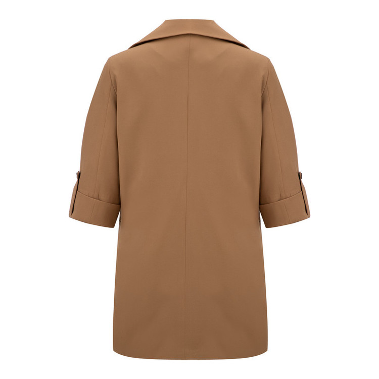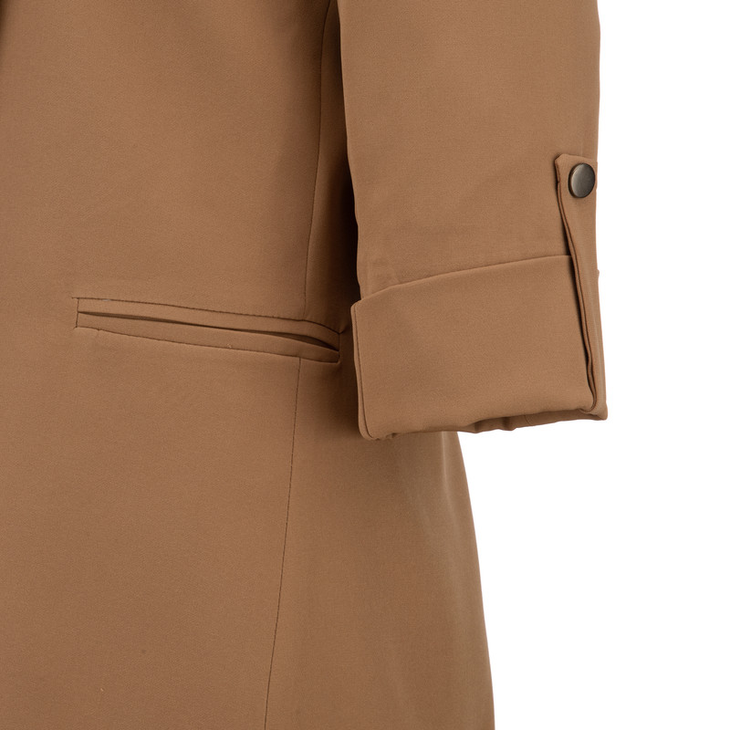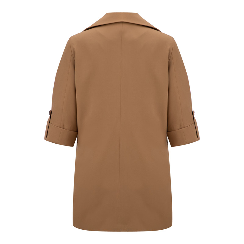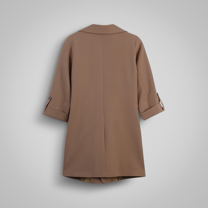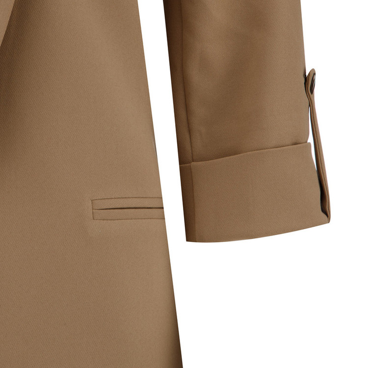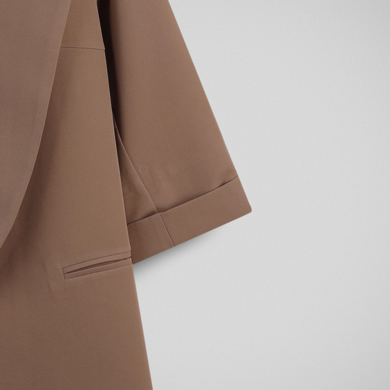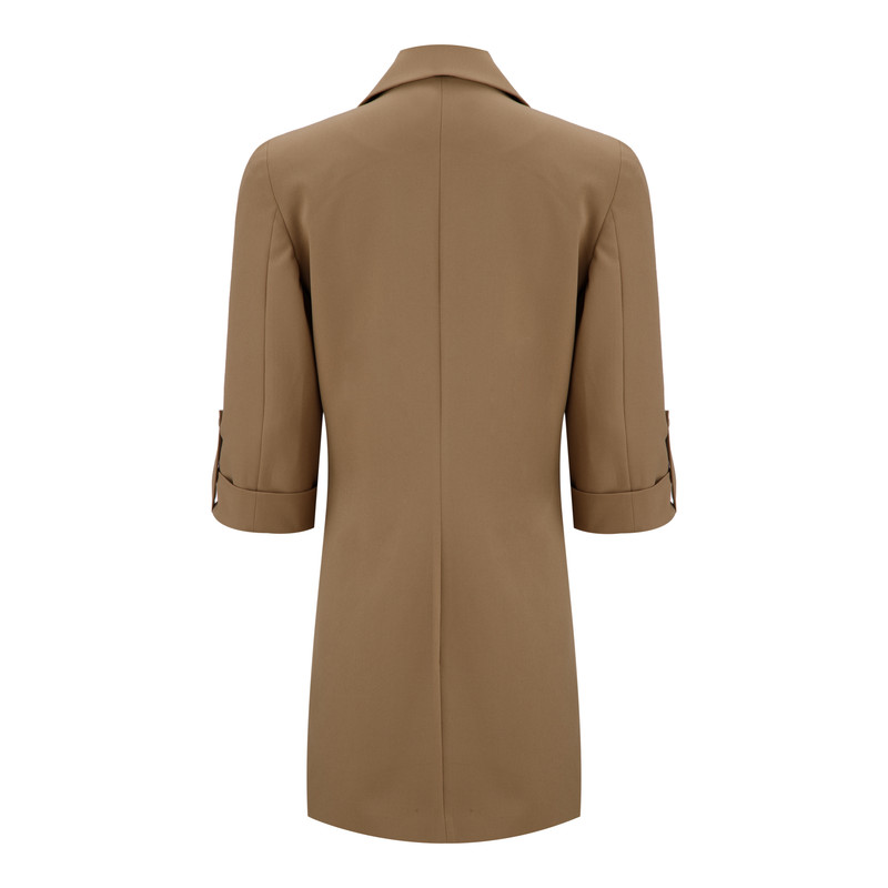 جنس پارچه: کتان صابونی سایزبندی: 36 تا 42 برش از سر شانه جلوی کار دو دکمه نما کت تک قد آستین بلند 2 عدد جیب اپل دار مدل یقه : انگلیسی نحوه ی بسته شدن: دکمه قد کت: 76 سانتی متر
