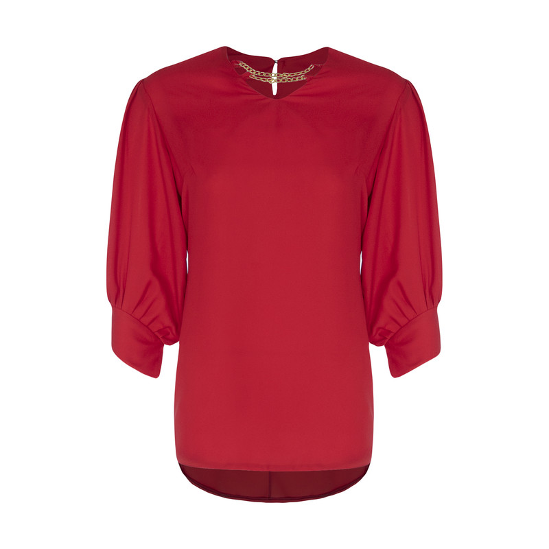 طرحسادهقدروی باسنمدل یقههفتنوع آستینآستین سه ربعتنخور لباسمعمولی (regular fit)مورد استفادهروزمره , مهمانیجزئیاتدارای دو زنجیر در قسمت یقهجنسکرپ حریر