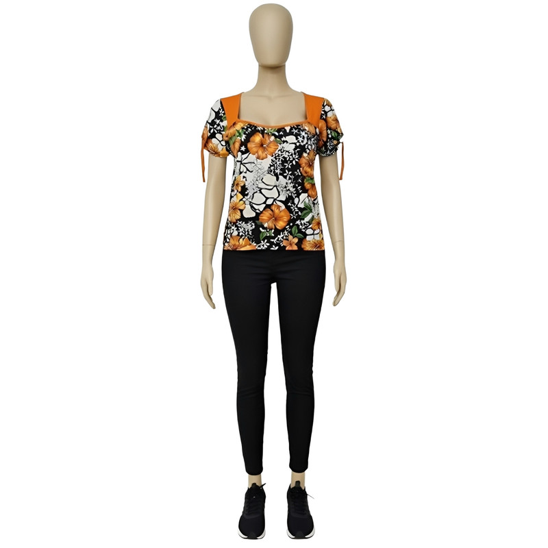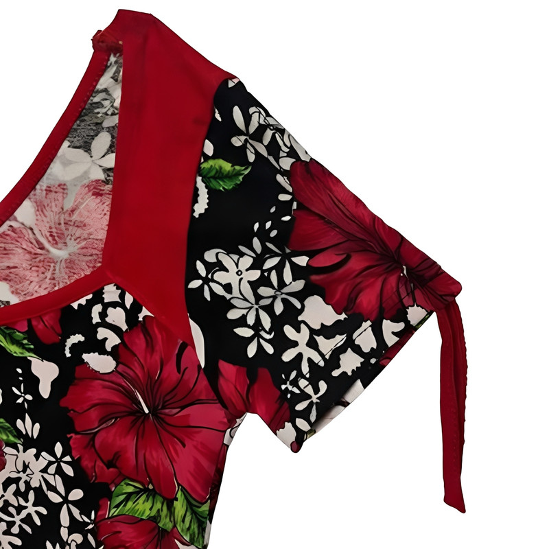 طرح گل های درشت و ترکیب رنگی زنده، جلوه ای شاد و پرانرژی به لباس می بخشد. زمینه تیره در کنار گل های برجسته باعث می شود رنگ ها بیشتر به چشم بیایند و استایل شما را خاص تر نشان دهند. یقه باز و طراحی سرشانه ها، فرم لباس را ظریف و زنانه کرده و به خوبی روی تن می نشیند. برش مناسب آن برای سایز ۳۶، اندام را متعادل و خوش فرم نشان می دهد.