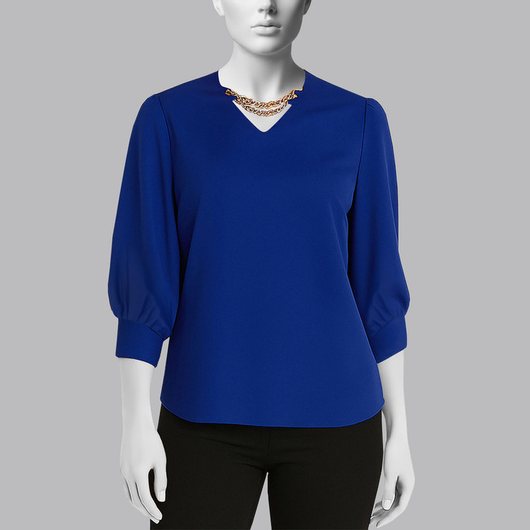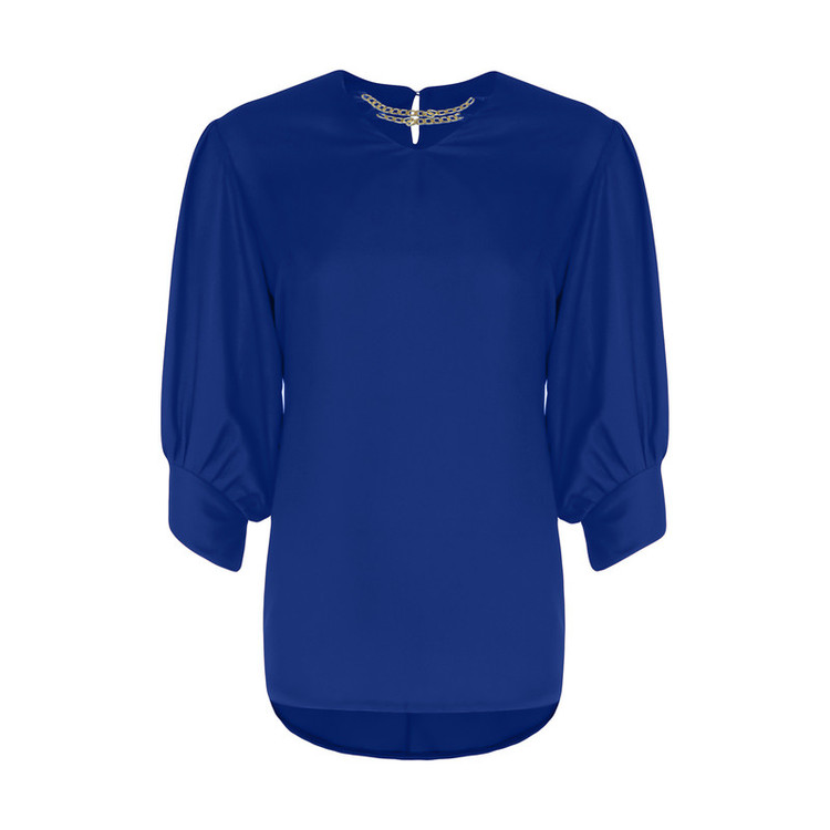قد این شومیز 75 cm میباشد و آستین آن سه ربع میباشد دو زنجیر تزیینی در قسمت یقه قرار داده شده
