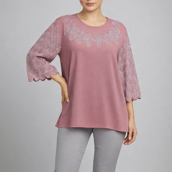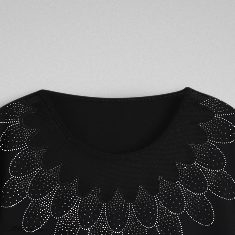 بلوز زنانه سایز بزرگ مجلسی دوخته شده ازپارچه جودون خاویاری دارای نگین بدون ریزش میباشد. آستین این بلوز از پارچه حریر کلفت دوخته شده است . یقه بلوز هم از جنس حریر آستین کارشده است. نگین کار شده جلوی بلوز ، روی آستین هم کار شده و بدون ریزش میباشد.