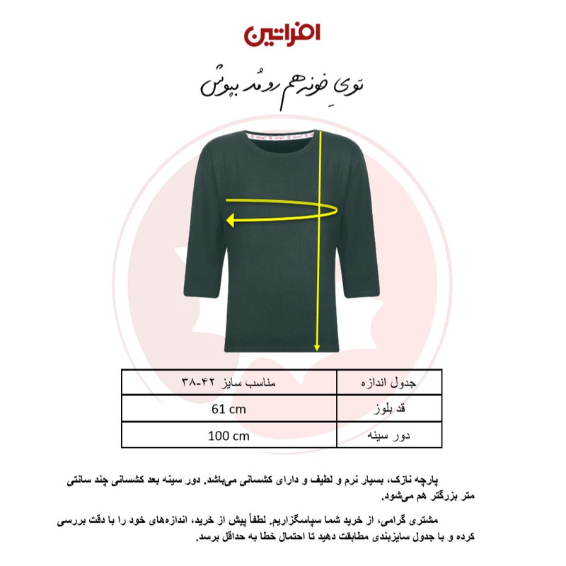 جزئیات : برای راهنمایی بیشتر مشتریان گرامی جدول سایز در آلبوم عکس کالا موجود است. مشتری گرامی، از خرید شما سپاسگزاریم. لطفاً پیش از خرید، اندازههای خود را با دقت بررسی کرده و با جدول سایزبندی مطابقت دهید تا احتمال خطا به حداقل برسد.