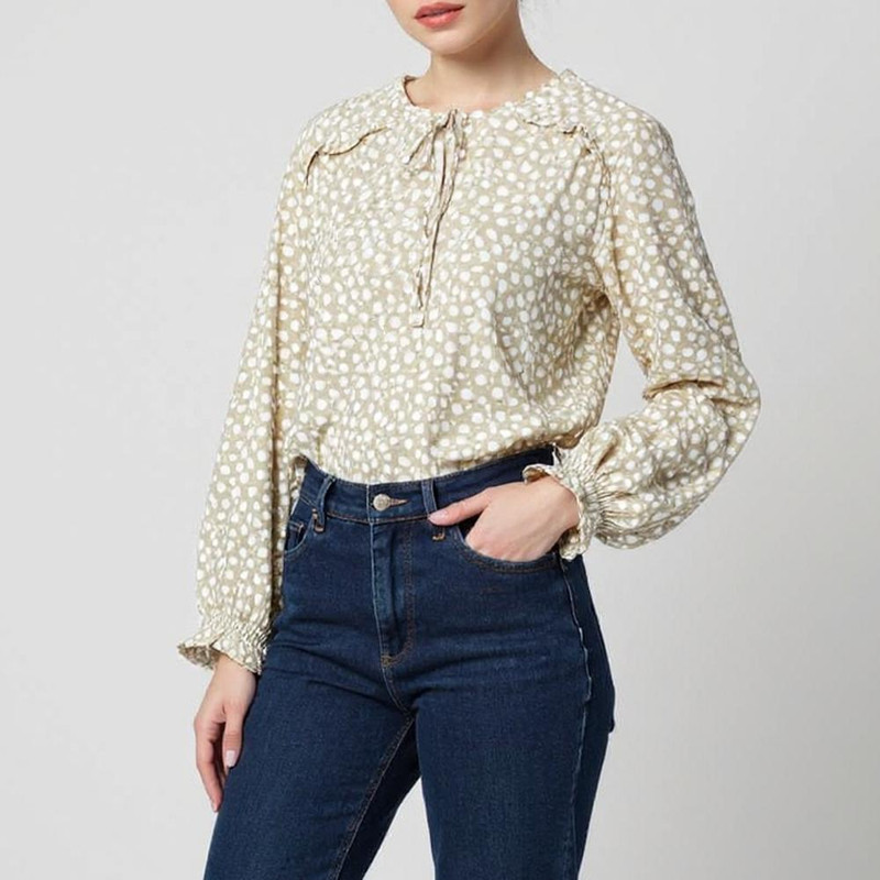 جنسپنبهطرحگلدارقدروی باسنمدل یقهگردنوع آستینآستین بلندتنخور لباسمعمولی (regular fit)مورد استفادهروزمره , اسپرت , مهمانیسایزبژ - 42