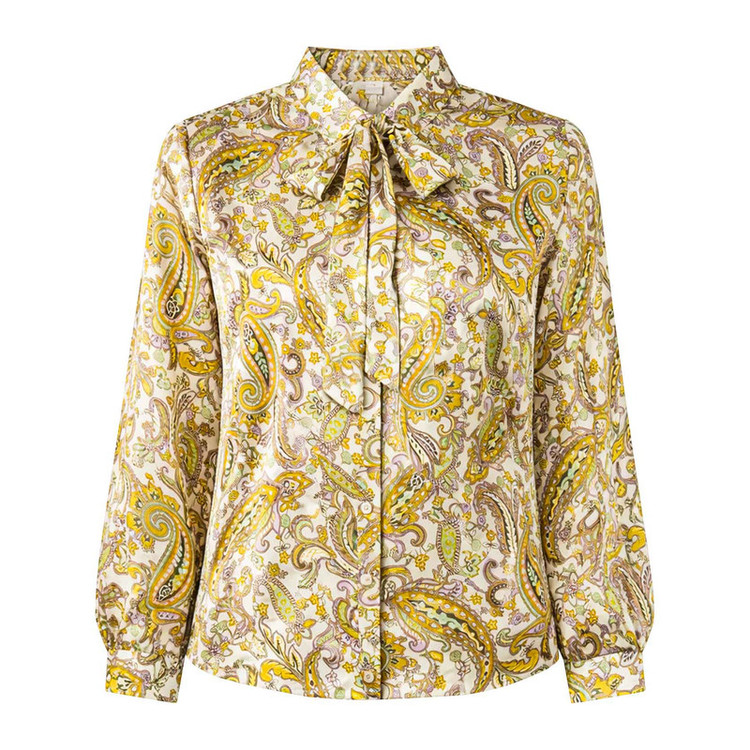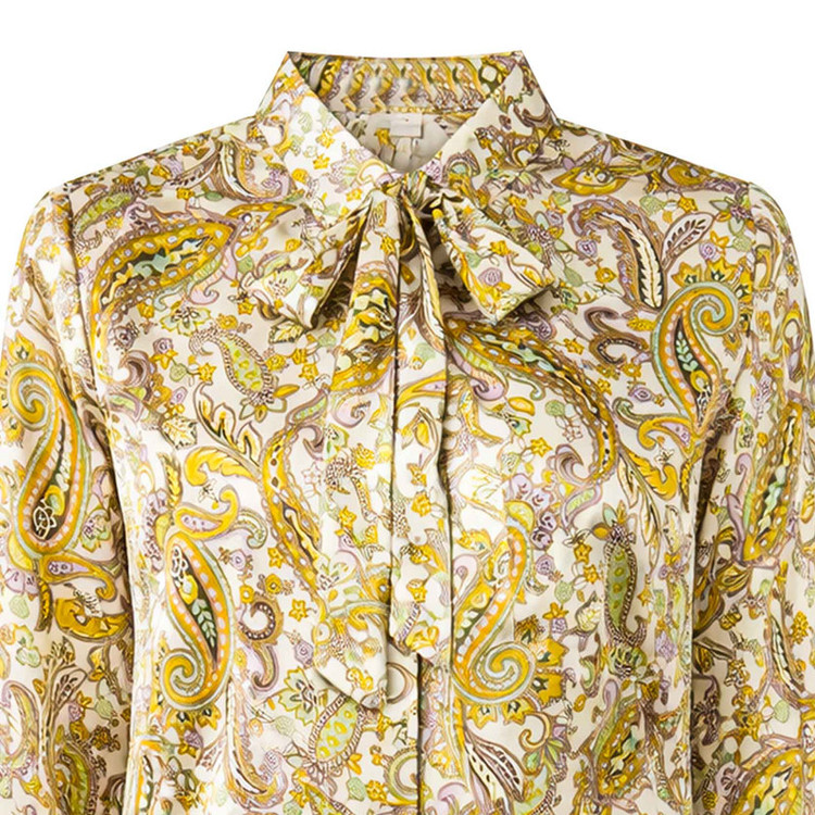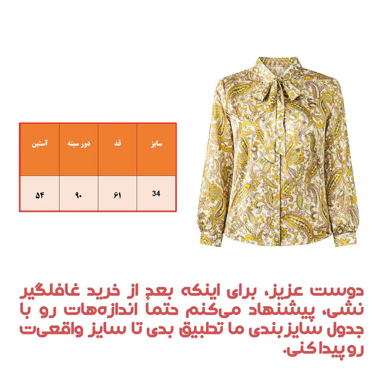 _ نوع یقه: برگردان کراواتی (با قابلیت گره زدن) _ جنس پارچه: ساتن (براق و لطیف) _ قد لباس: روی باسن _ نوع آستین: بلند (دارای مچ دکمهدار) _ تنخور: معمولی (Standard Fit)