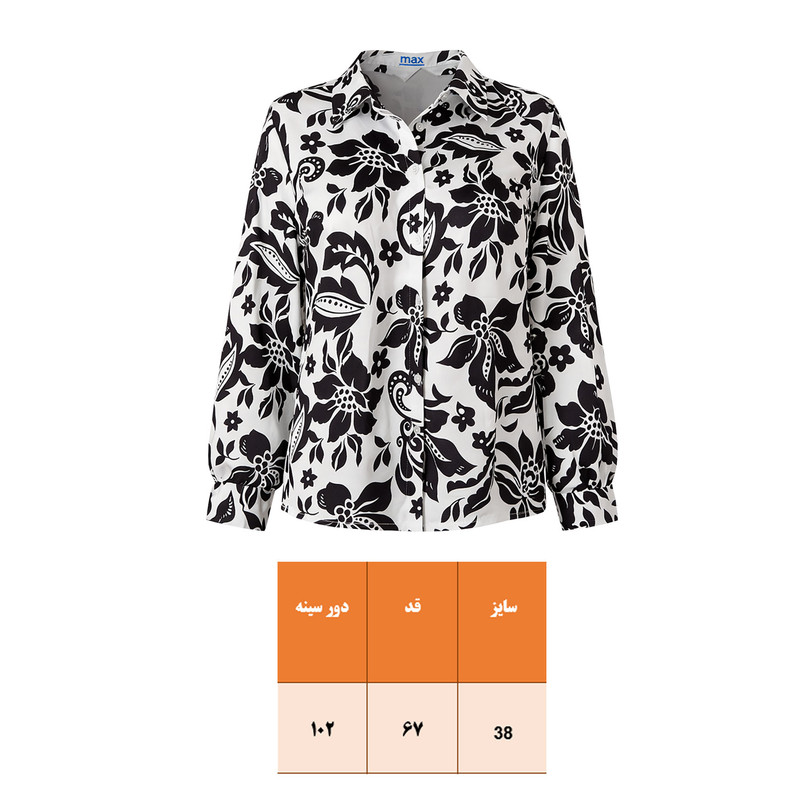 _ جنس: ساتن _ طرح: گلدار _ قد: روی باسن _ تنخور: معمولی _ نحوه بسته شدن: جلو دکمه