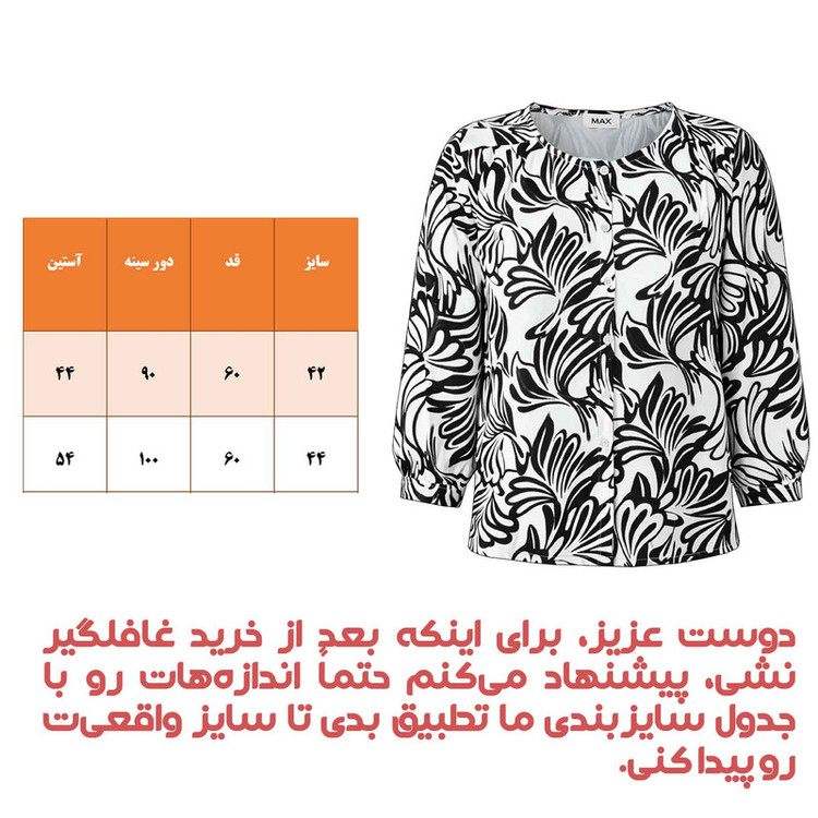 شومیز آستین بلند یقه گرد زنانه مکس مدل مجلسی 46762