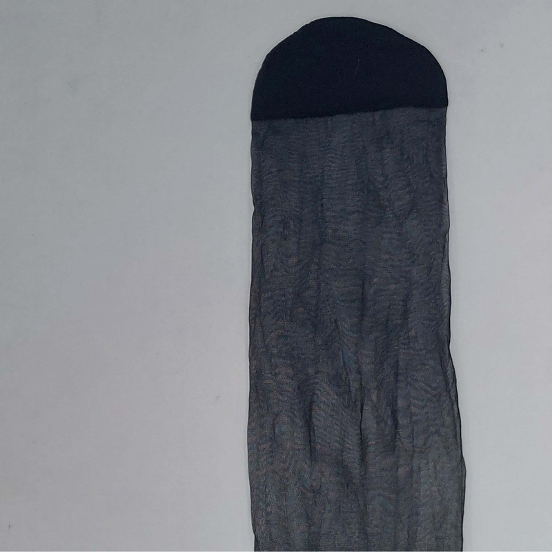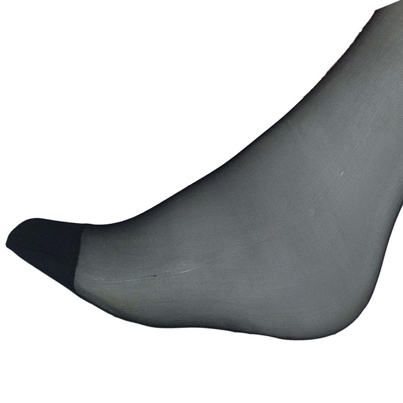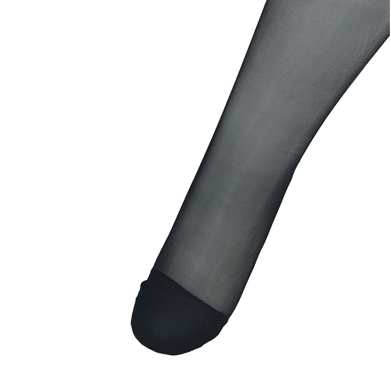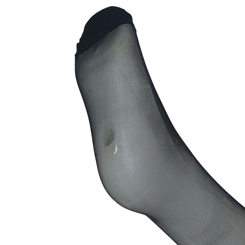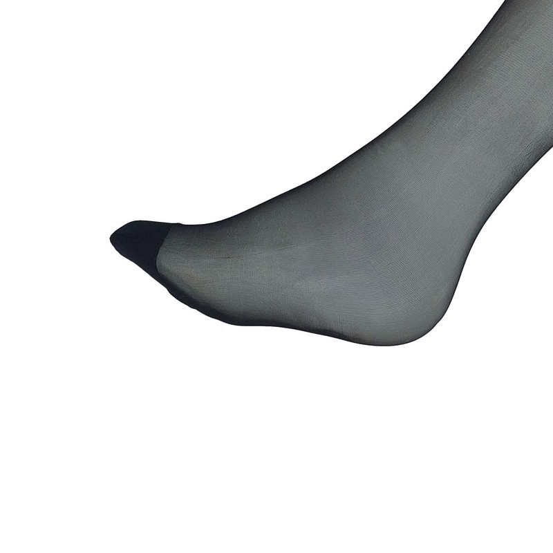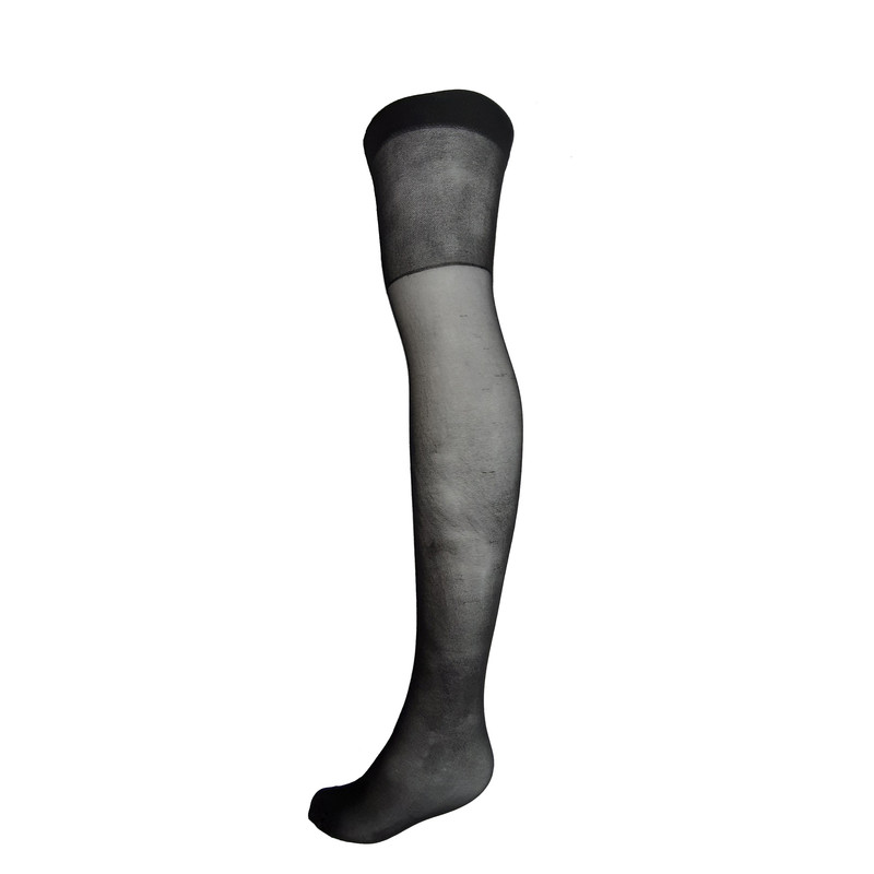 قد جوراب تا بالای زانو است و بدون کفه و ضخامت آن شیشه ای نازک است