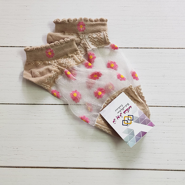 جوراب ساق کوتاه زنانه تن پوش هنگامه مدل شیشه ای گل بابونه کد KP33
