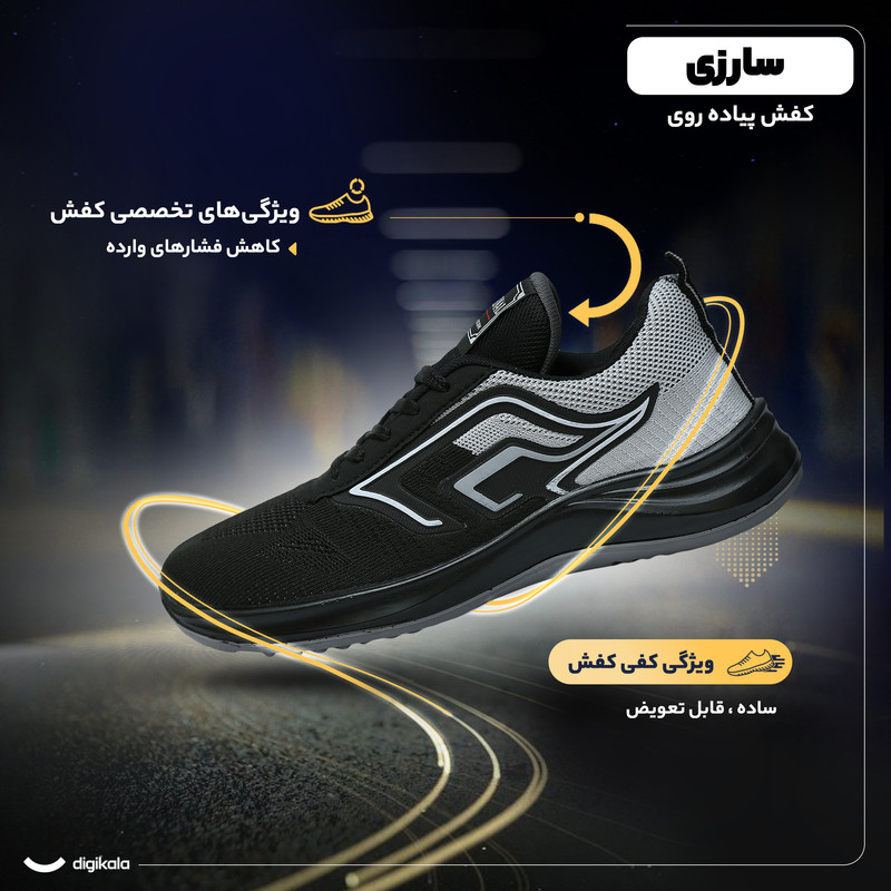 کفش پیاده‌روی سارزی از جنس اشبالت با زیره دارای قابلیت گردش هوا، کاهش فشارهای وارده، مدل sil_r.a.m.a