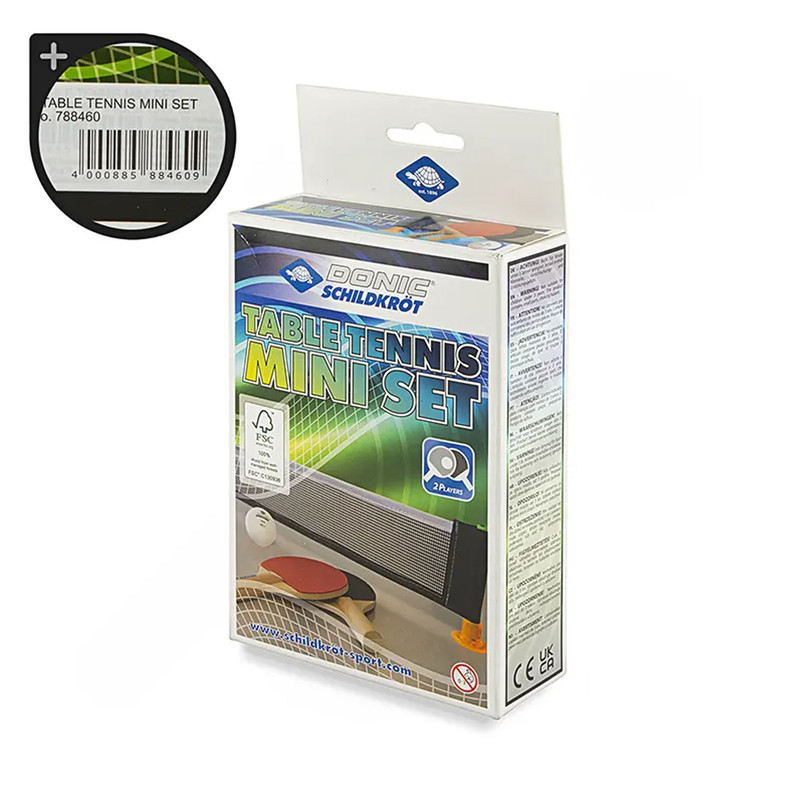 عدد راکت با ابعاد 14 در 9 سانتی متر _ 1عدد تور با ابعاد 57.5 در 7.5 سانتی متر _ 2 عدد پایه نگه دارنده تور _ 2عدد پستانک برای اتصال به سطح مورد نظر _ 1عدد توپ Jade