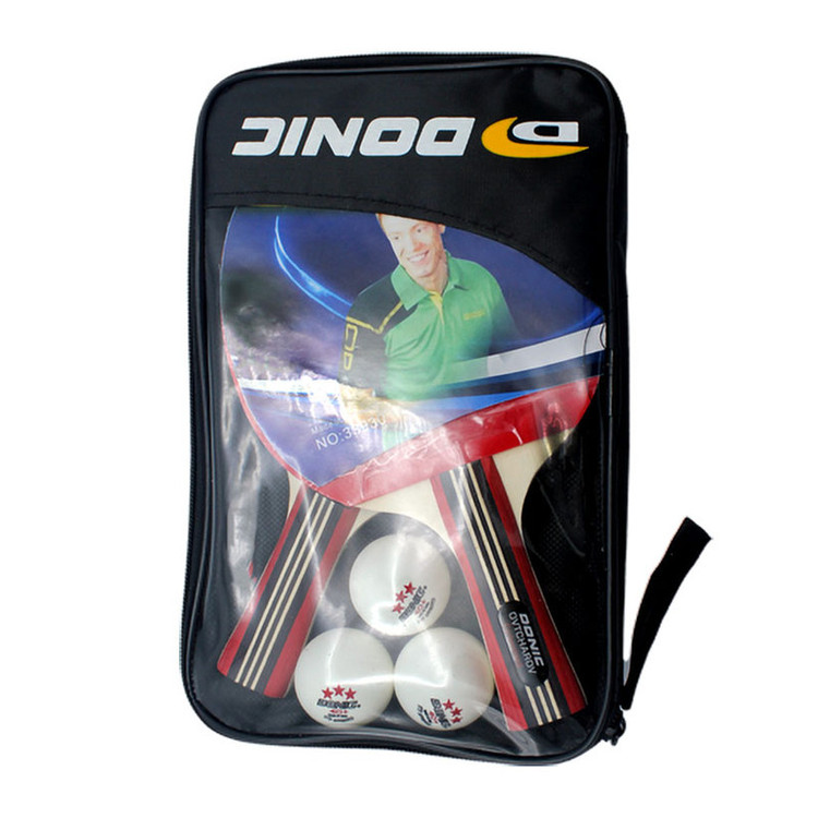 2 عدد راکت پینگ پنگ دونیک به همراه یک عدد کیف برای حمل و نقل آسان و 3 عدد توپ مناسب برای افرادی که دفاعی بازی میکنند