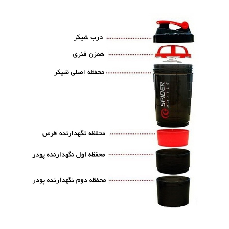 سایر توضیحات: بدون مواد مضر BPA دارای محفظه نگهداری قرص و پودر دارای شیکر فنری دارای محفظه نگهداری مکمل های غذایی خاصیت ضد نشت اندازه شیکر در حالت بستن لیوان به انتهای آن: 25 سانتی متر