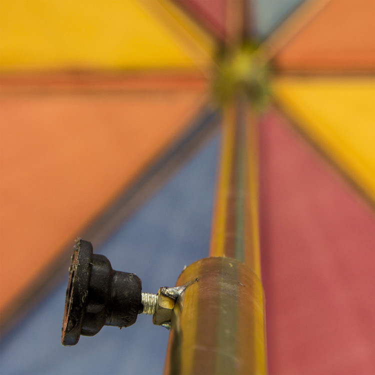 پایهی سایهبان از لوله آبکاری شده آهنی سایز 22 و قسمت انتهایی میلهی پایه به قطعهای آهنی متصل میشود که حالت دایرهایشکل دارد