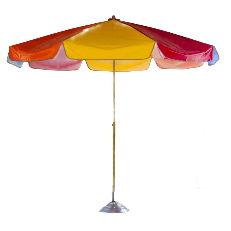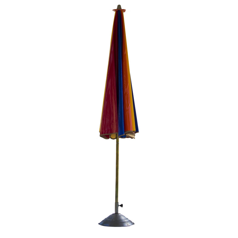پایهی سایهبان از لوله آبکاری شده آهنی سایز 22 و قسمت انتهایی میلهی پایه به قطعهای آهنی متصل میشود که حالت دایرهایشکل دارد
