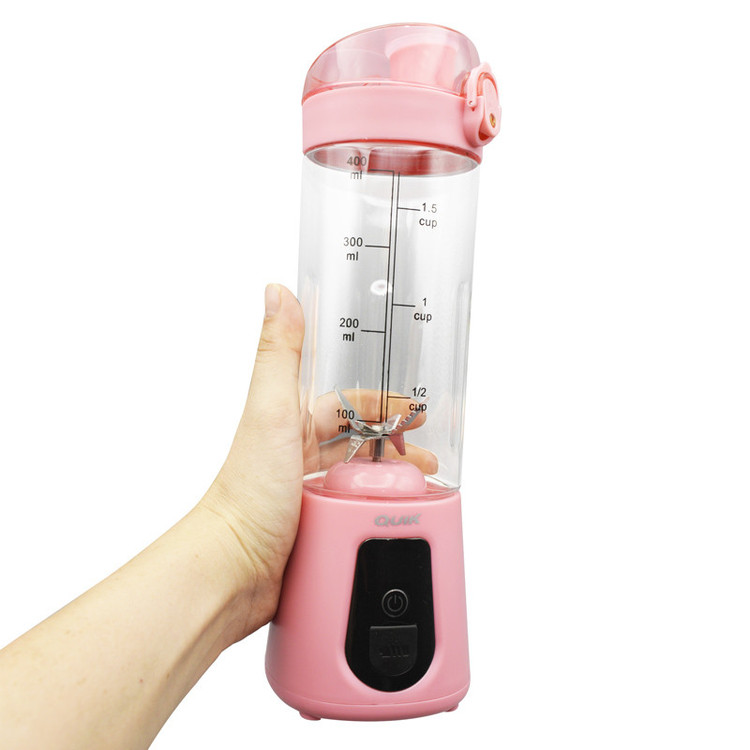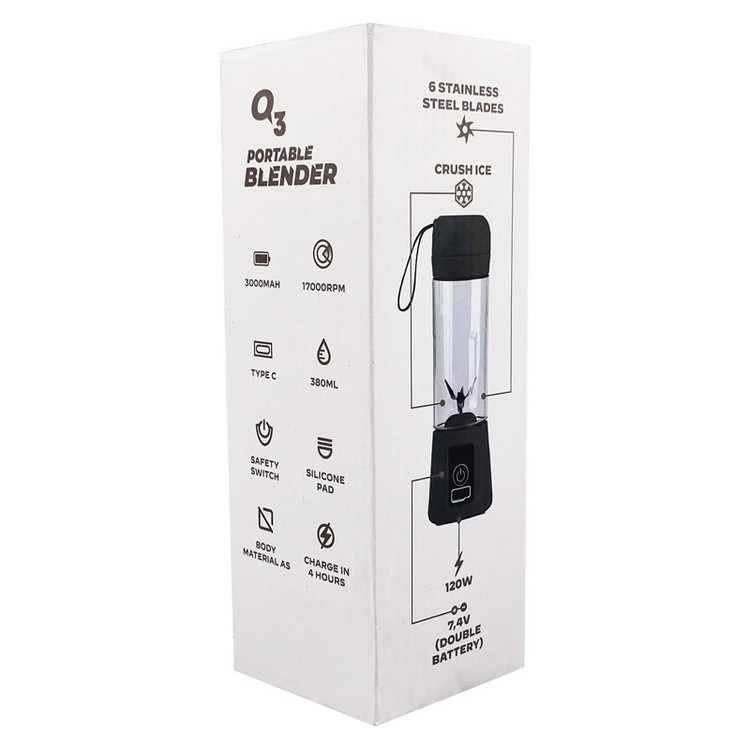 شیکر و مخلوط کن شارژی کوئیک QUIK مدل A5 به روز ترین محصول کمپانی QUIK است که با تکنولوژی پیشرفته و طراحی بدنه کریستالی خود ، یک مخلوط کن حرفه ای پر قدرت قابل حمل و ضد آب را در اختیار شما قرار میدهد تا بتوانید در زمان ، نوشینی دلخواه خود را درست کرد و از آن لذت ببرید . تیغه های به کار رفته در این مخلوط کن با کیفیت ، از جنس استیل 304 با طراحی 6 پره سه جهته با قابلیت یخ شکن می باشد که به راحتی تمام ، فراتر از انتظار یک مخلوط کن شارژی هر آنچه که داخل این مخصول کن قرار دهید را خرد میکند از قالب یخ و میوه یخ زده گرفته تا دانه های سخت مثل جوز هندی و زنجبیل و سایر خوراکی های سخت پوست ، این مخلوط کن به شما هرگز در خرد کردن ، نه نمیگوید. در ساخت این محصول از موتور دریل شارژی استفاده شده که سرعت چرخش آن تا 17000 دور بر دقیقه بالا می رود و میتواند یک نوشیدنی یک دست و با بافتی نرم را در اختیار شما قرار دهد. این مخلوط کن حرفه ای توانایی ذخیره سازی 3000 میلی آمپر انرژی را دارد که با هر بار شارژ قابلیت استفاده بیش از 20 مرتبه را به شما میدهد فقط دقت کنید که برای افزایش عمر دستگاه به هیچ عنوان نباید با شارژر فست شارژ محصول را شارژ کنید و میتوانید با آداپتور های معمولی موبایل (غیر فست شارژ) به راحتی محصول را شارژ کرده و سال ها از آن استفاده کنید .این محصول برای شیک کردن انواع مکمل ورزشی و ساخت انواع اسموتی و نوشیدنی و شیک مناسب میباشد و همچنین در موقعیت های سفر و کمپینگ و حتی آشپز خانه میتوانید برای آماده سازی غذا از آن استفاده نمایید (مثل خرد کردن گوجه یا خرد کردن پیاز برای پختن کباب) . نکته مهم در ایمنی این محصول عدم روشن شدن و چرخش تیغه ها در زمان باز بودن و حین تمیز کردن آن می باشد .