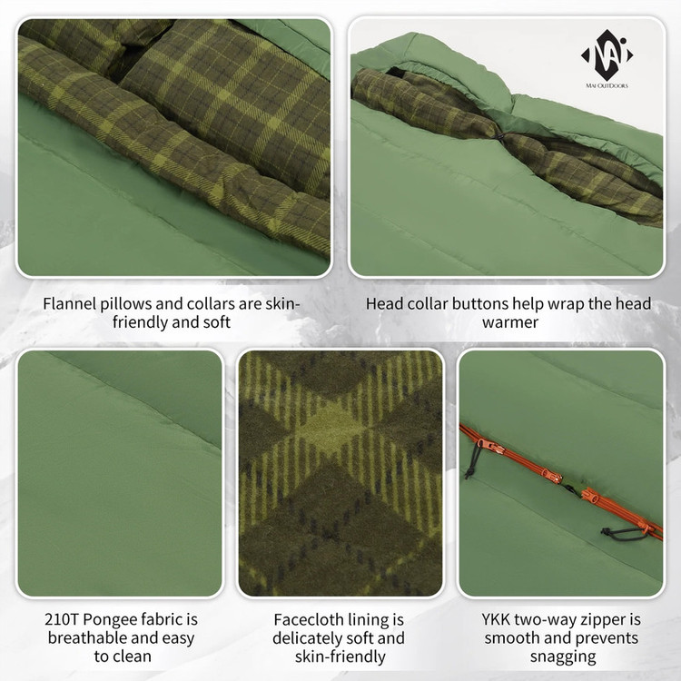 قابل حمل به صورت کوله پشتی - دارای یقه برای گرم نگه داشتن سر - پارچه داخلی و بالشت ها پشمی بسیار لطیف و نرم و ضد حساسیت - تنفس پذیر - زیپ YKK 2 طرفه