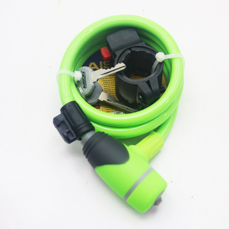 - قفل کابلی دوچرخه آیسون - سایز : 10*120 سانتی متر - طول : 120 سانتی متر - دارای 2 عدد کلید همراه - دارای در پوش محافظ روی مغزی قفل - دارای پوشش روکش PVC انعطاف پذیر - محصولی بسیار با کیفیت ،زیبا و کار آمد