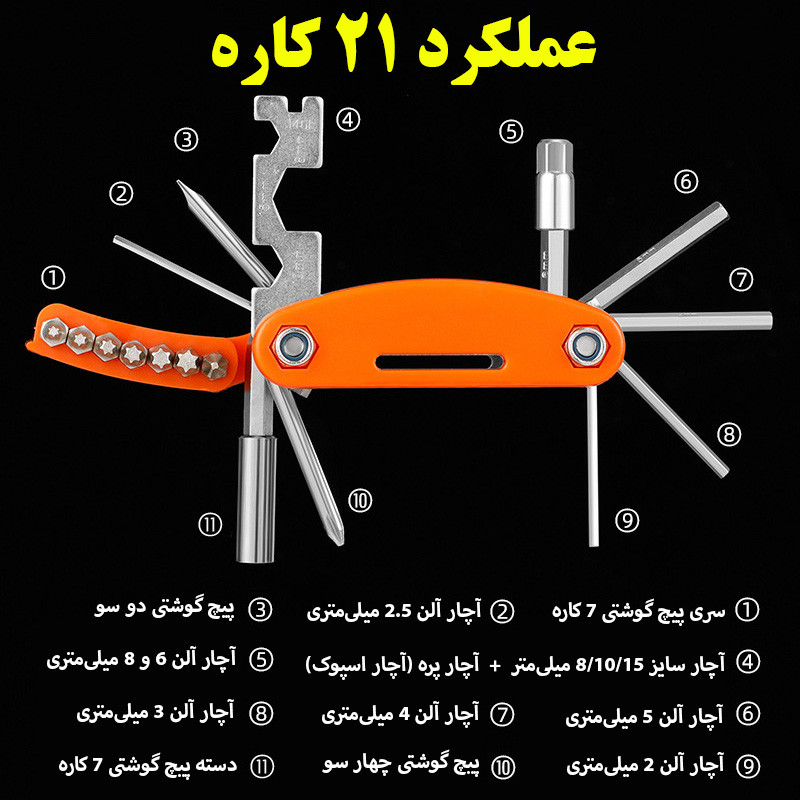 آچار دوچرخه مدل کربن استیل 21 کاره کد 25009