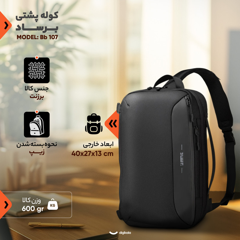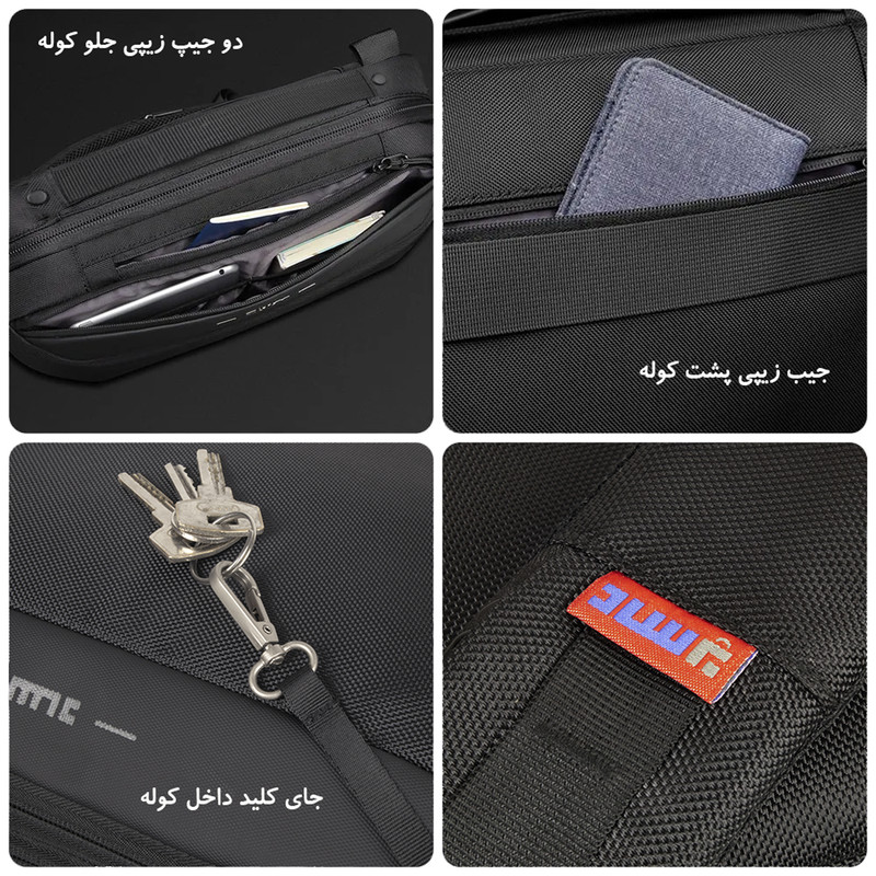 جیب بیرونی , جیب خودکار , جیب داخلی , دارای یک محفظه اصلی , محفظه نگهداری اسناد , محفظه نگهداری لپتاپ , محفظه نگهداری کلید , محفظه نگهداری تبلت