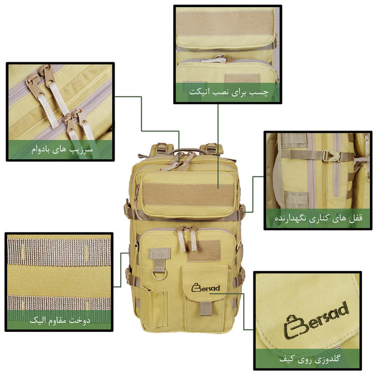 محفظه نگهداری کلید , دارای یک محفظه اصلی , جیب بیرونی , جیب داخلی , محفظه نگهداری لپتاپ