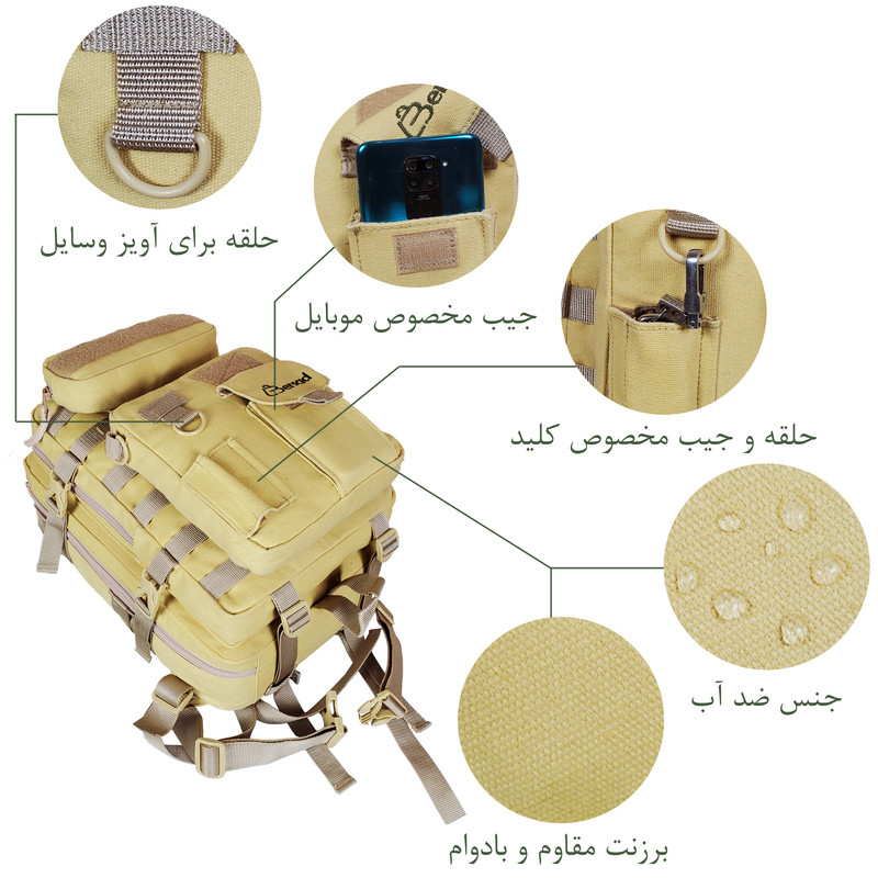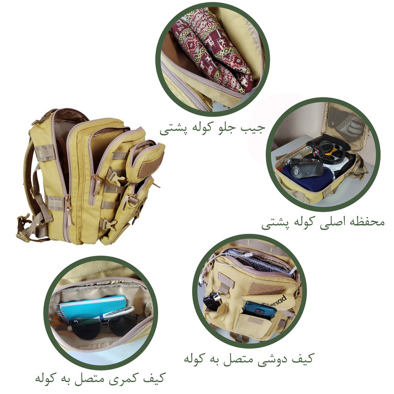 محفظه نگهداری کلید , دارای یک محفظه اصلی , جیب بیرونی , جیب داخلی , محفظه نگهداری لپتاپ