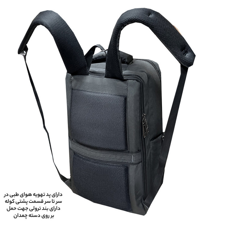 جیب بیرونی , جیب خودکار , جیب داخلی , دارای یک محفظه اصلی , محفظه نگهداری اسناد , محفظه نگهداری لپتاپ