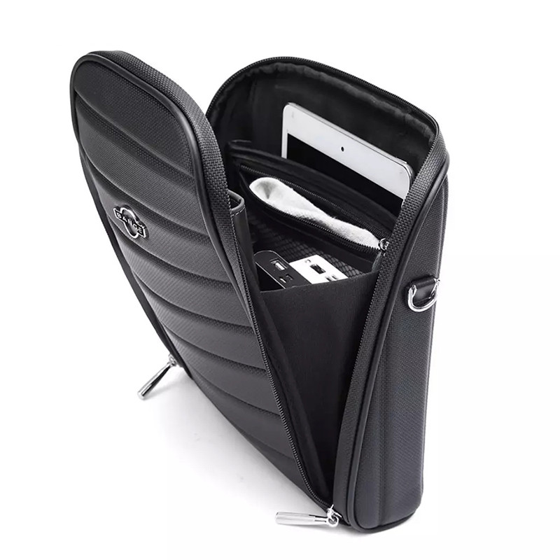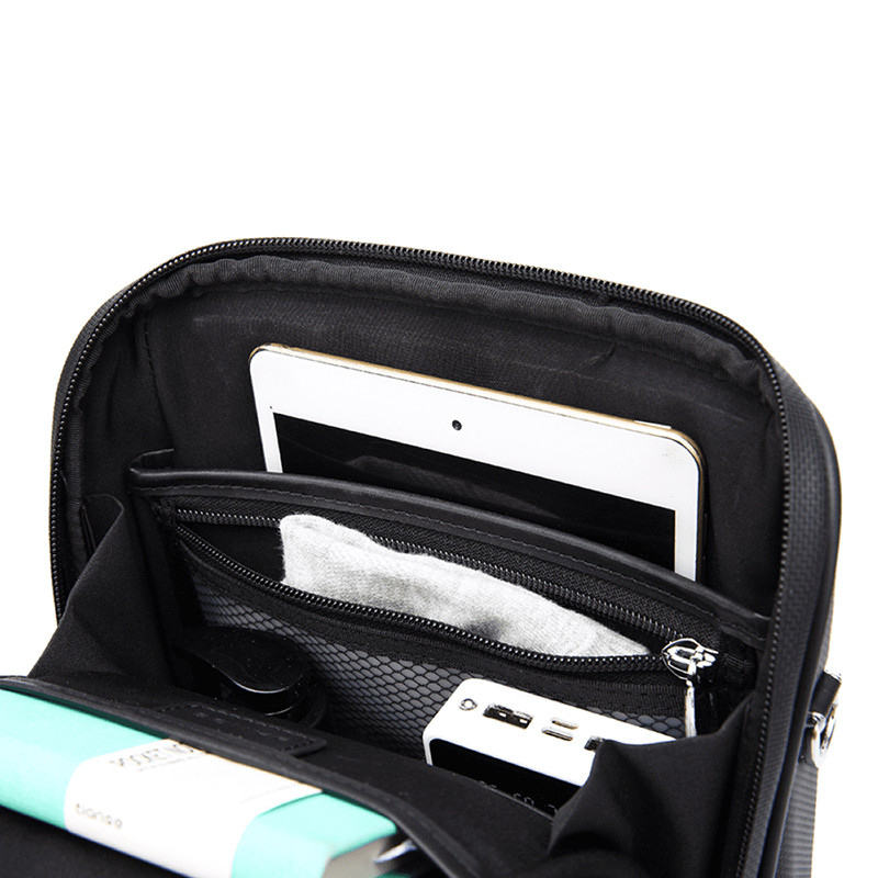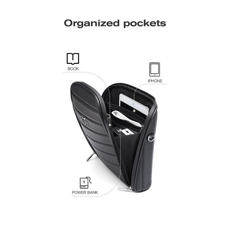 دارای یک محفظه اصلی , جیب داخلی , محفظه نگهداری پاسپورت