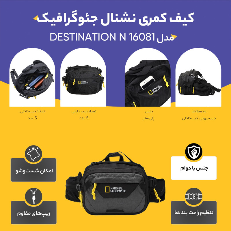 - قابلیت استفاده به 2 روش کمری و رودوشی - دارای جیب با قابلیت مسدود کردن امواج - محل نگهداری کارت اعتباری - دارای قابلیت شستشو با مواد شوینده بدون آنزیم