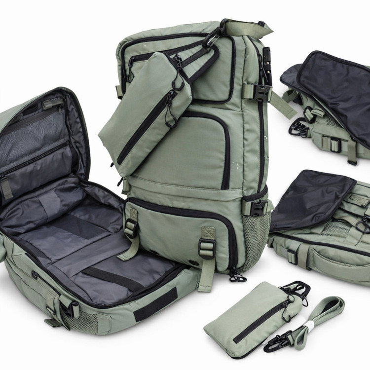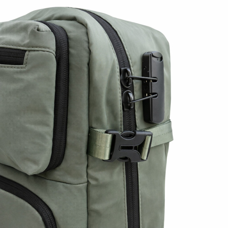 جیب خودکار , جیب داخلی , محفظه نگهداری اسناد , محفظه نگهداری لپتاپ , محفظه نگهداری پاسپورت , محفظه نگهداری کلید , دارای دو محفظه اصلی , محفظه نگهداری تبلت , محفظه کابل و شارژر , جای قمقمه , محفظه نگهداری لباس زیر , محفظه نگهداری کفش , جای عینک