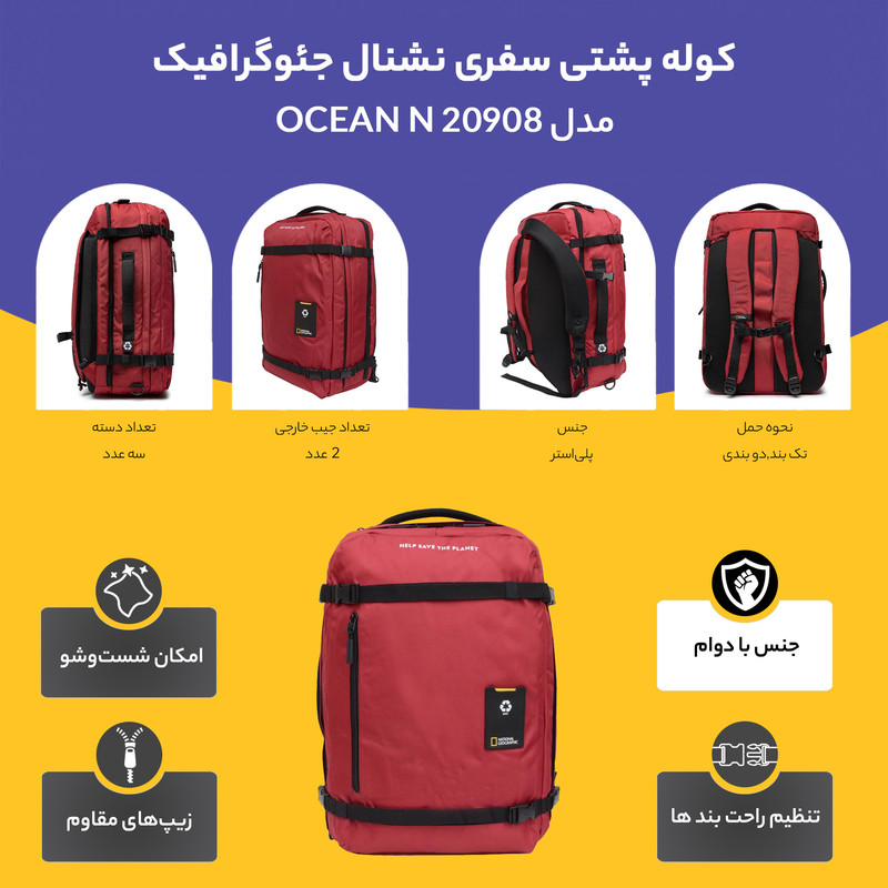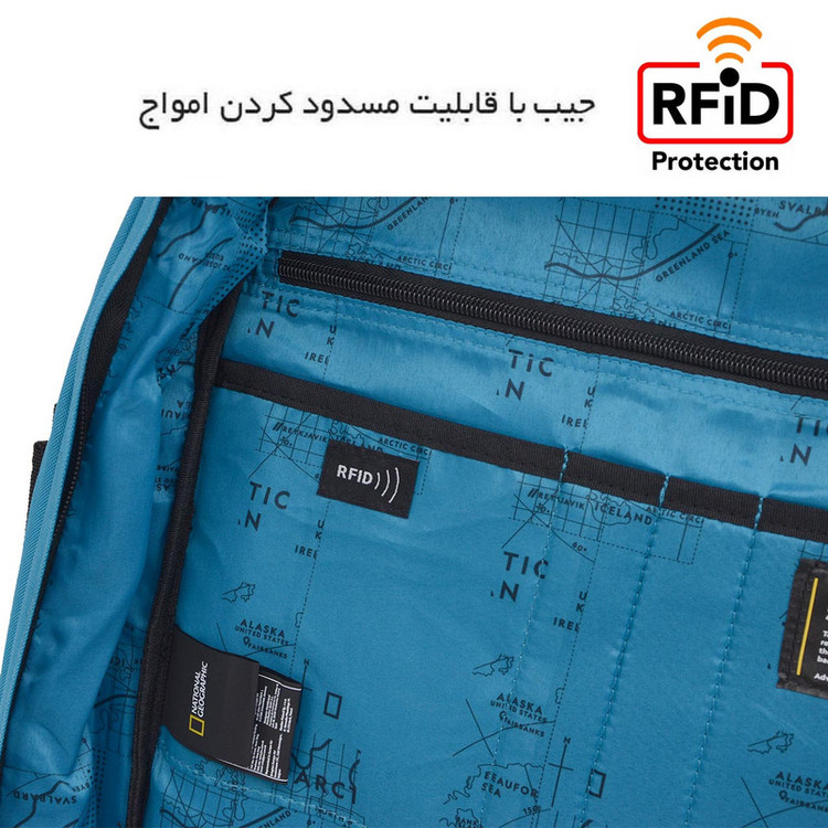 - دارای محفظه نگهداری تبلت - دارای جیب با مسدود کردن امواج - دارای محفظه نگهداری موبایل - دارای محفظه نگهداری خودکار - دارای محفظه نگهداری کارت اعتباری