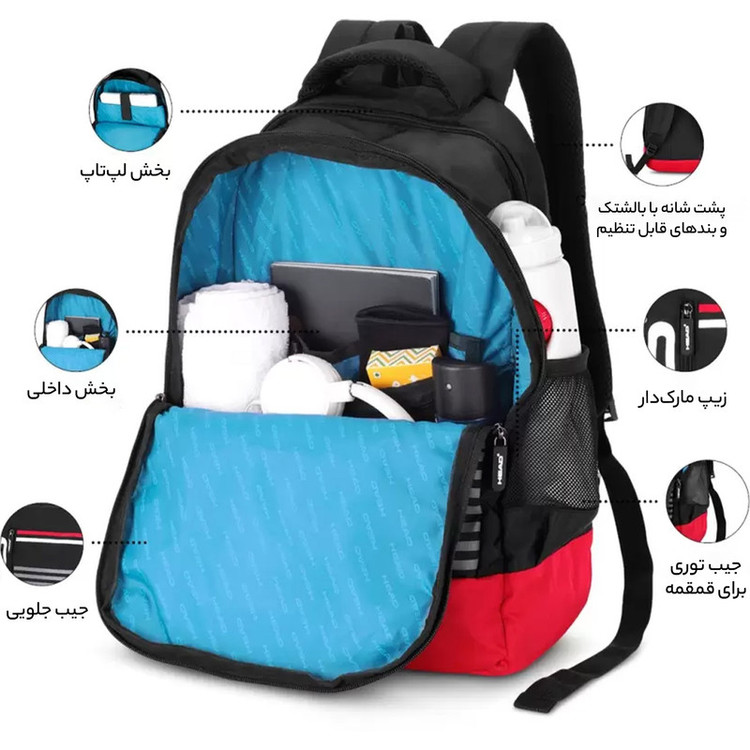 - ضد آب و قابل شست و شو - دارای محفظه طبی اسفنجی در پشت جهت جریان هوا و ضد ترزیق - دارای محفظه نوشت افزار - دارای محفظه کارت اعتباری - دارای محفظه لپ تاپ - قابلیت حمل بطری