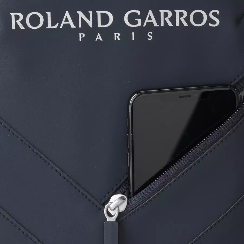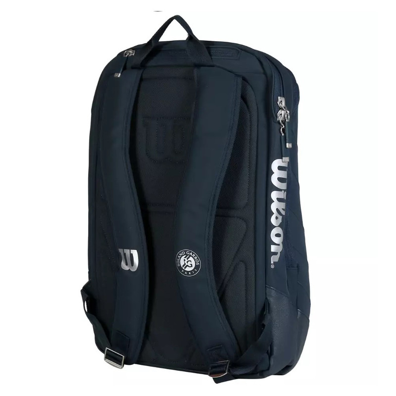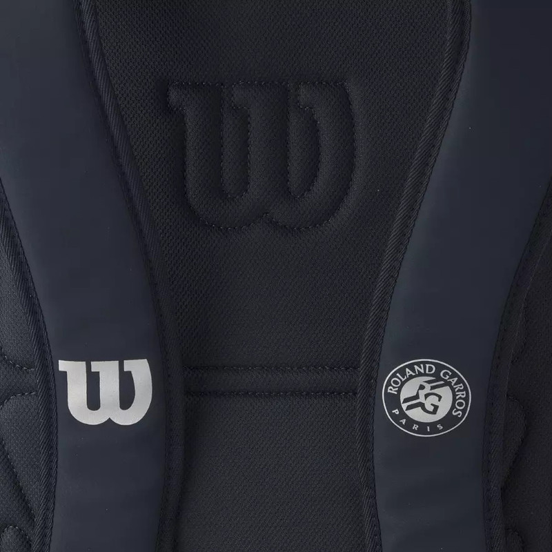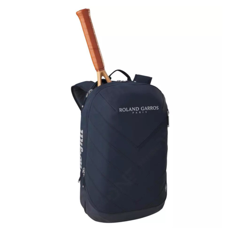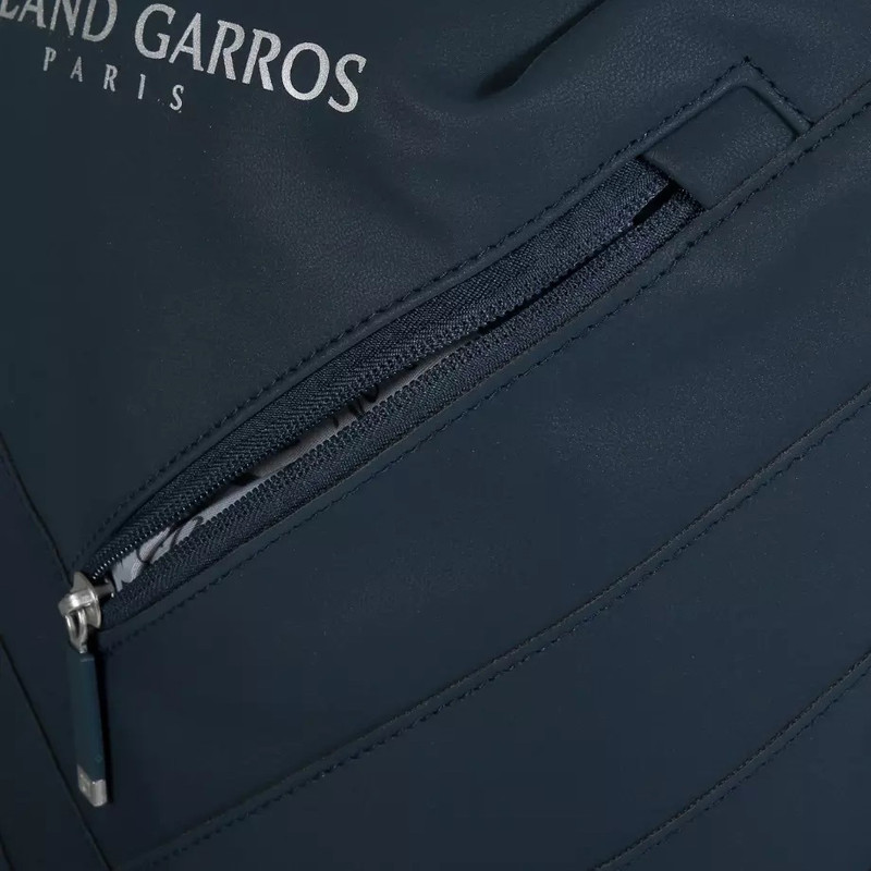 ابعاد: ۴۹×۲۸.۵×۱۶.۵ سانتیمتر باکیفیت و مقاوم دارای یک قسمت مخصوص راکت با ظرفیت دو راکت دارای یک بخش بزرگ برای نگهداری وسایل مختلف دارای دو جیب زیپدار در قسمت جلو و پشت دارای یک کیسه برای نگهداری کفش و البسه کثیف منقش به نشان مسابقات رولان گاروس