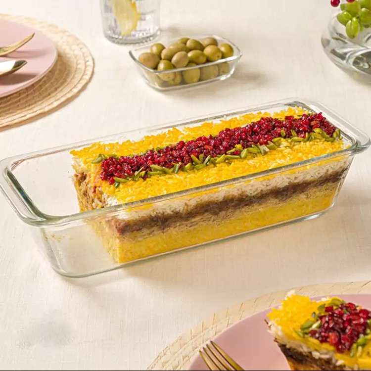 تابه شیشه ای مستطیل لیمون، از جنس بلور، دارای گنجایش 1.7 لیتر است. این تابه قابل استفاده در مایکروویو و فر تا دمای 230 درجه سانتی گراد می باشد. این محصول مناسب پخت، سرو و پذیرایی انواع مواد غذایی مانند لازانیا، ته چین، دسر و … است.