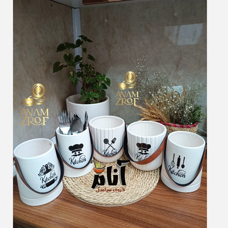 ارتفاع 16دهانه 10 کار گرد ارتفاع 14هانه 13سانت مناسب چنگال مناسب کارد قاشق کفگیر و ملاقه معمولا رندوم گذاشته میشود مگر هماهنگ کنید