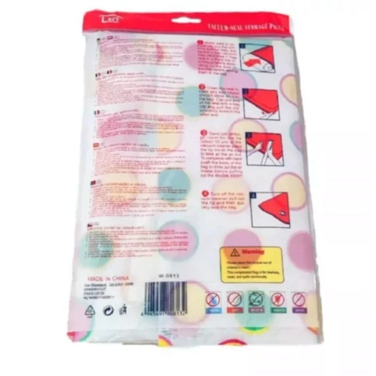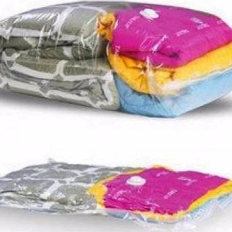 وکیوم پک کیسه مخصوصی است که شما میتوانید با استفاده از آن حجم البسه خود را تا 75 درصد کاهش دهید. یکی از کاربردهای استفاده از کیسه کم حجم کننده لباس یا همان وکیوم بگ جلوگیری از نفوذ حشرات، بید زدگی، رطوبت، بوگرفتگی، گرد و خاک و نفوذ قارچ ها و باکتری ها به داخل البسه است. یا تصور کنید که قصد رفتن به سفر را دارید آیا دوست ندارید حجم لباس هایتان تا یک چهارم کاهش پیدا کند تا راحت تر در چمدان یا ساک شما جای بگیرد؟ کیسه کم حجم کننده لباس (وکیوم بگ) این کار را برای شما انجام می دهد. فقط کافیست از قسمت کناری کیسه پوشاک خود را وارد کیسه کرده و سپس بعد از بستن زیپ مخصوص با جاروبرقی اقدام به تخلیه هوای داخل کیسه نمایید . دقت کنید برای دریافت نتیجه مطلوب از تا کردن زیاد البسه داخل کیسه خودداری نمایید تا هوا بتواند در هنگام مکش به درستی خارج شود همچنین از فشردن زیاد البسه داخل یک کیسه خودداری نمایید. در هنگام تخلیه هوا حتما ابتدا جاروبرقی را خاموش کرده و سپس خرطومی جاروبرقی را از دهانه کیسه جدا کنید تا آسیبی به درب خروجی هوا وارد نشود.