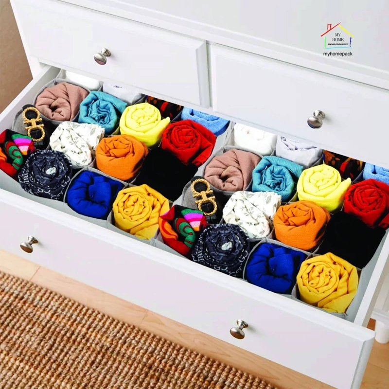 ✅توکشویی 12 خانه myhome جهت ساماندهی لباس زیر ،شال ،جوراب و ... در کشو 🌈رنگ : طوسی 📐ابعاد: 11 *27 *35 cm ابعاد 16 خانه 36*36*12